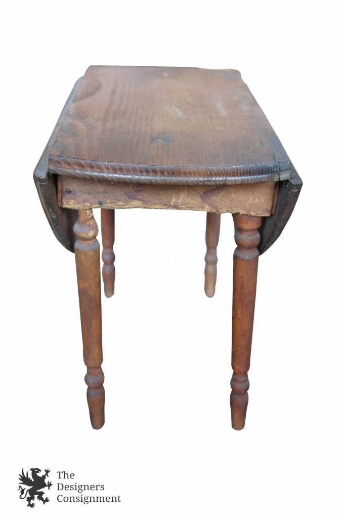 Primitive 1940s salesman sample drop leaf table. Made from pine with turned legs and brass hardware.