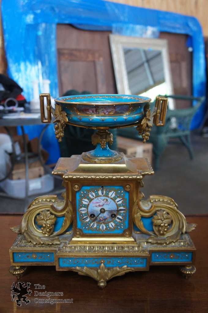 Sevres Antique Garniture Mantel Clock & Candelabra Set Gay Vicarino Movement