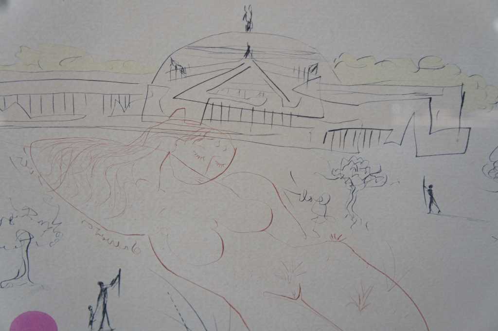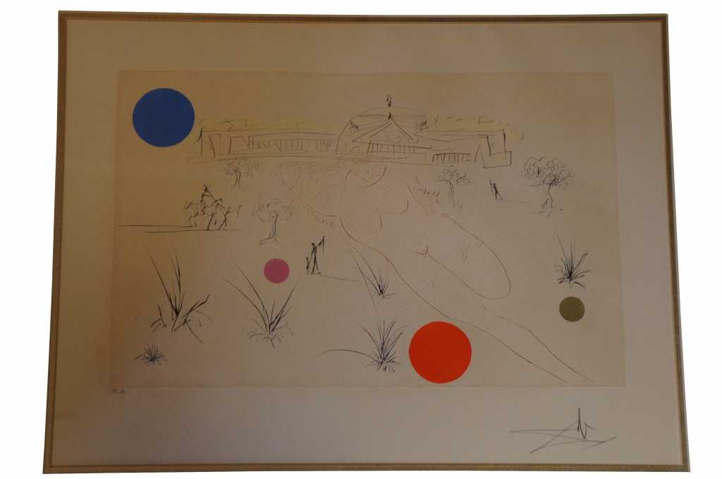 Museum of Science and Industry (Plate D) drypoint etching with stencil by Salvador Dali.