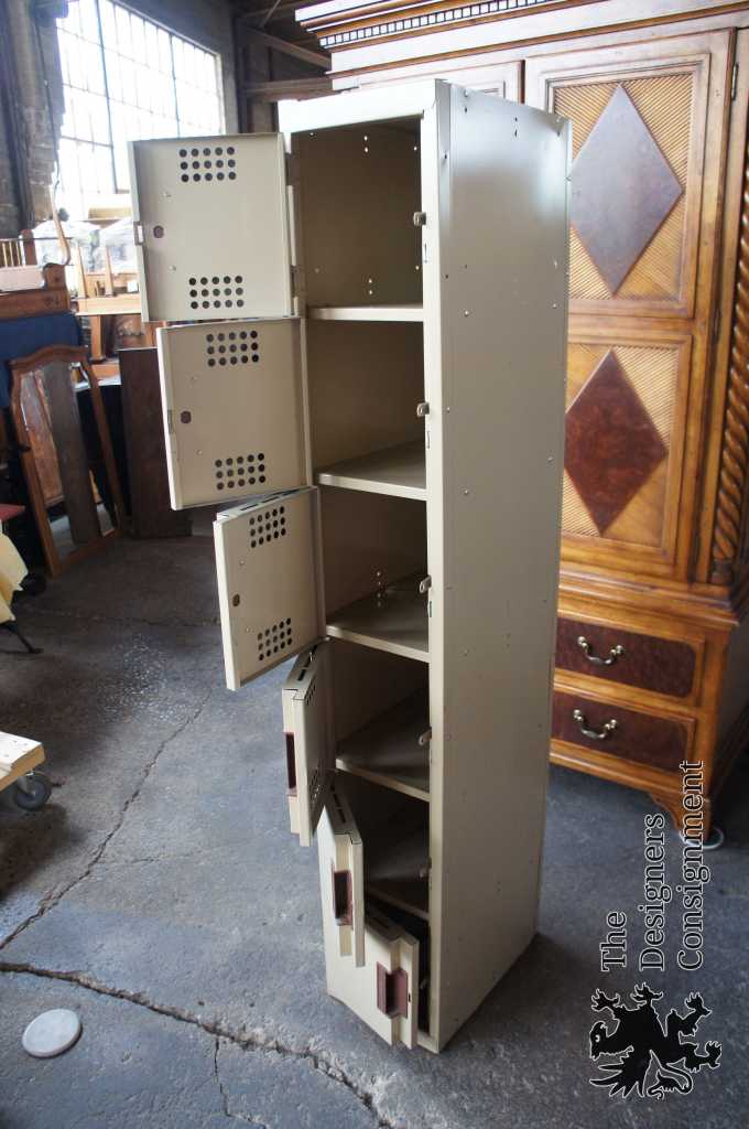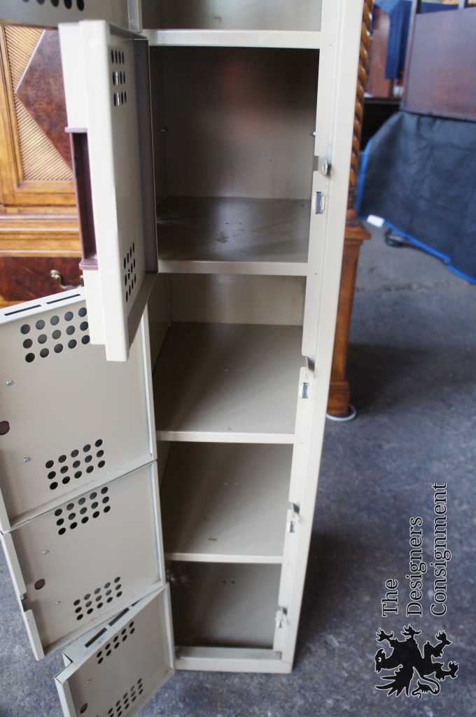 Vintage Edsal Six Section Tan Storage Locker White Metal Tower Cabinet Tool