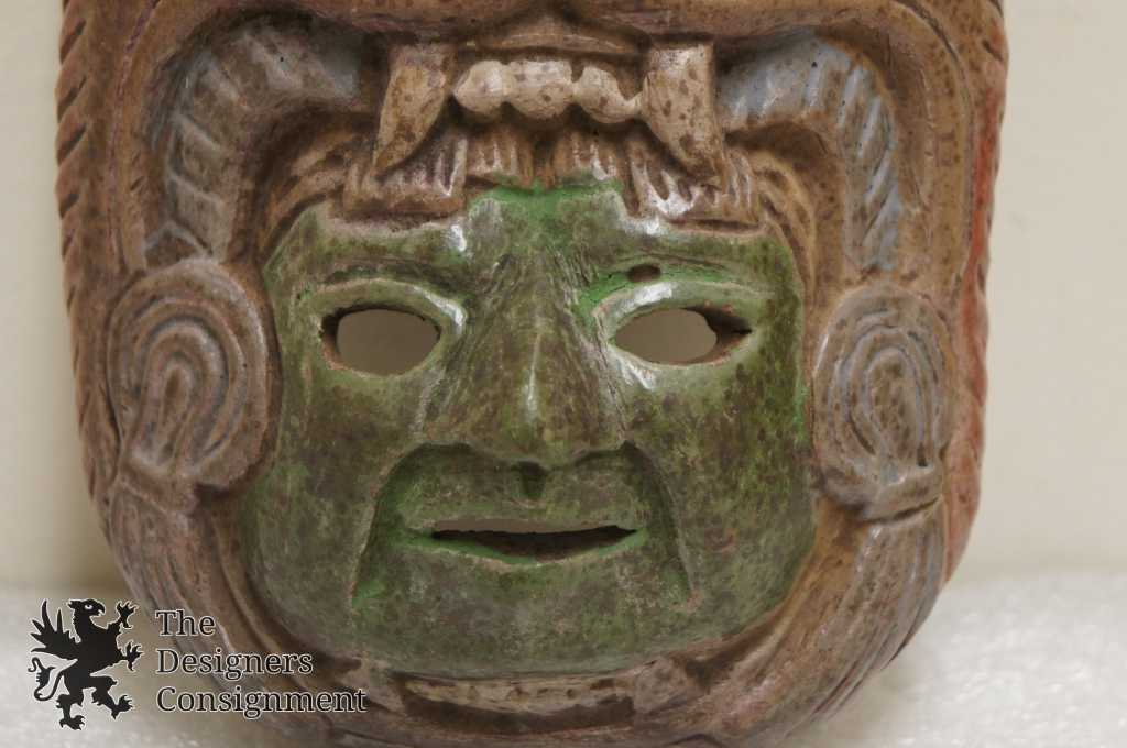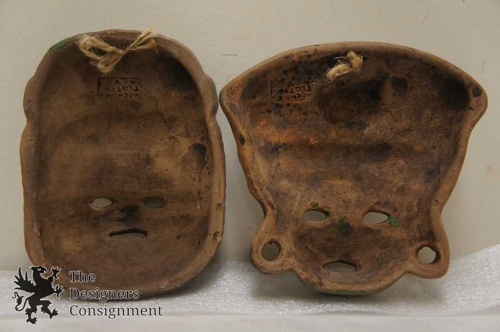 2 Mexican Folk Art Mini Ceremonial Tribal Masks Wall Plaques Mayan Aztec Pottery
