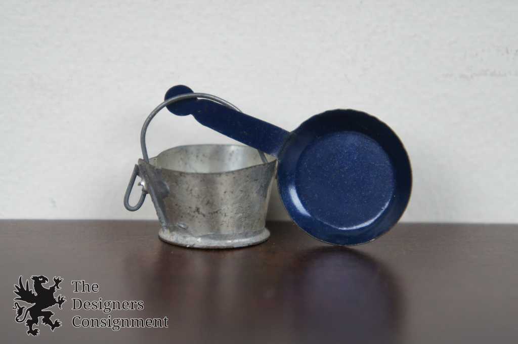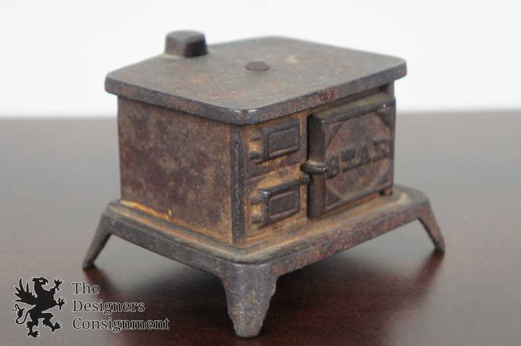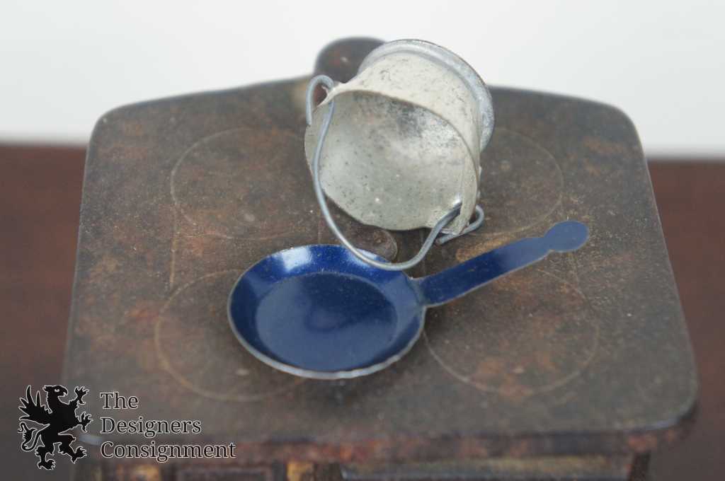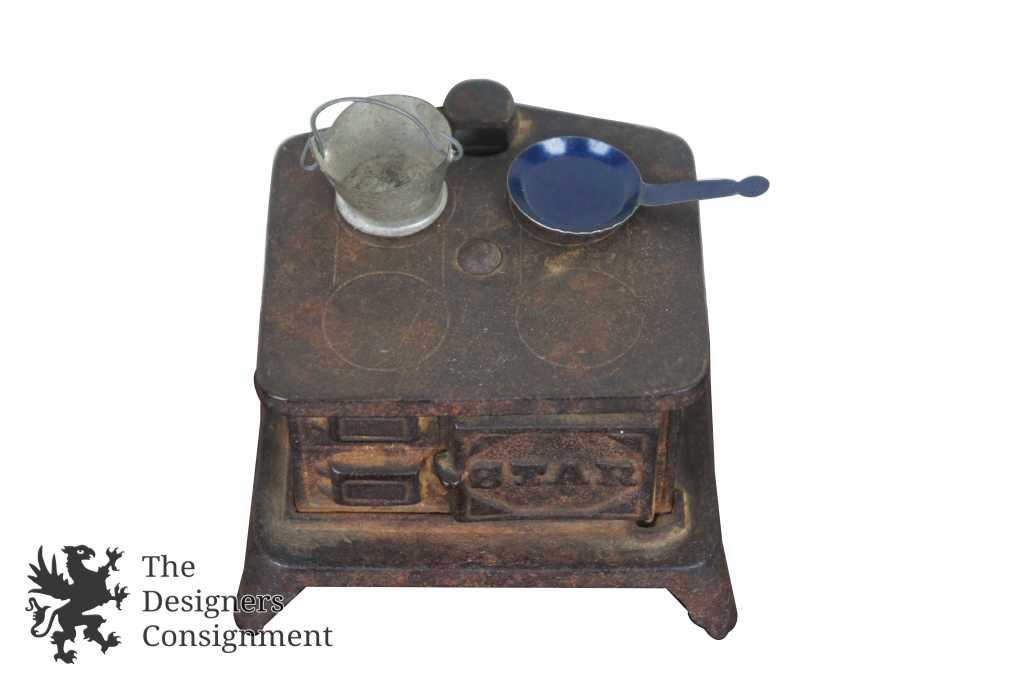 Antique Star Cast Iron Toy Kitchen Stove w/ Accessories Tin Bucket Frying Pan
