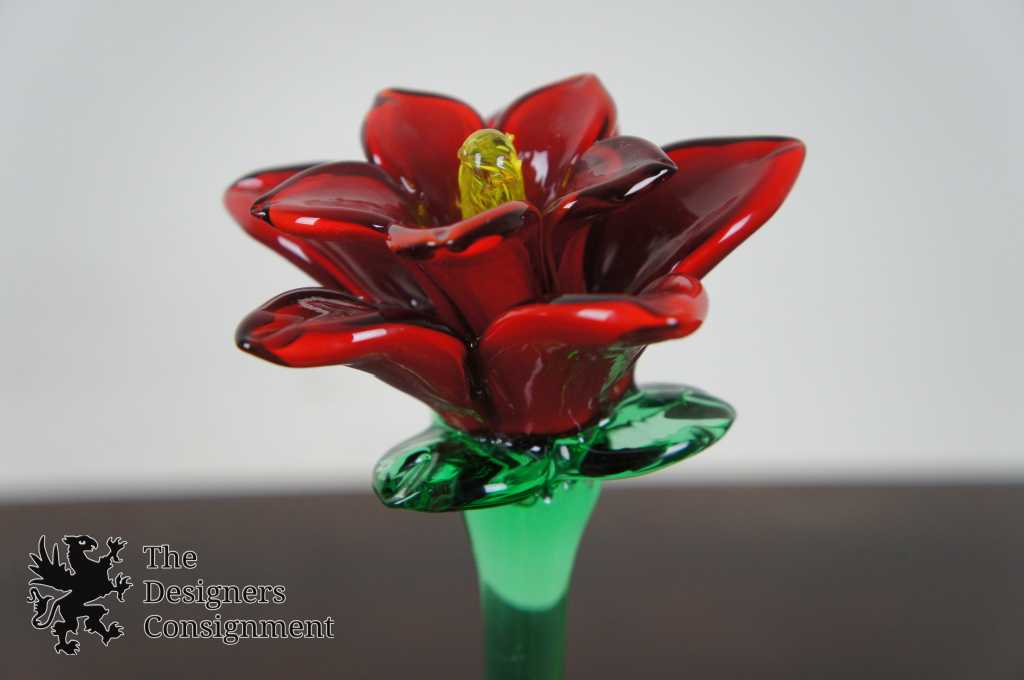 Murano hand blown flowers. Features a daffodil, blue flower, red flower, white flower, & sunflower. Perfect for display individually, or together in a vase.
