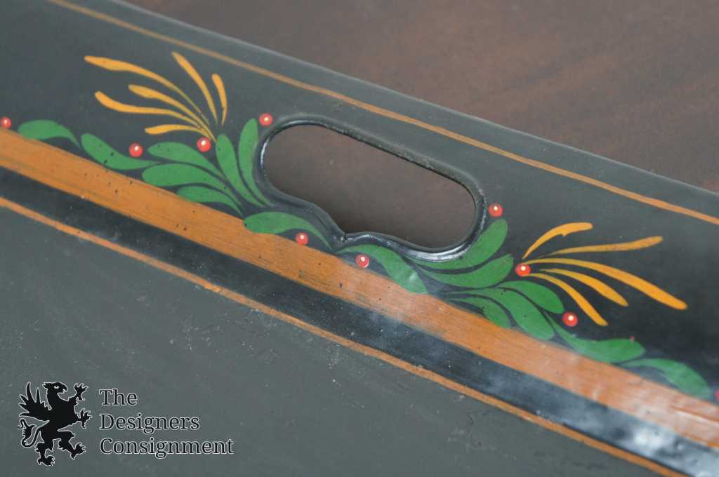 Beautiful hand painted tole tray. Black with holly berries and wheat. The perfect serving tray come Christmas time.