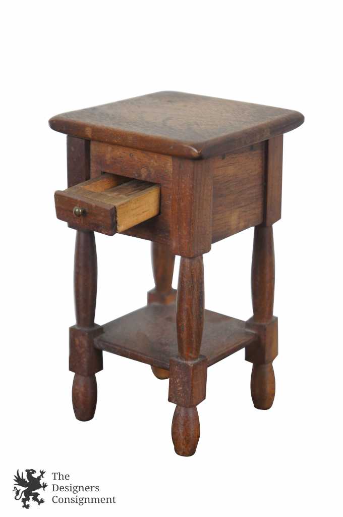 Antique Child's Doll House Sized Walnut Two Tiered Side End Accent 1:12