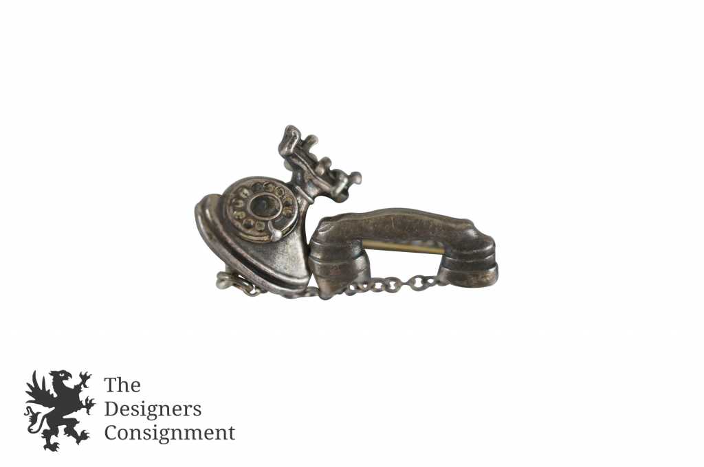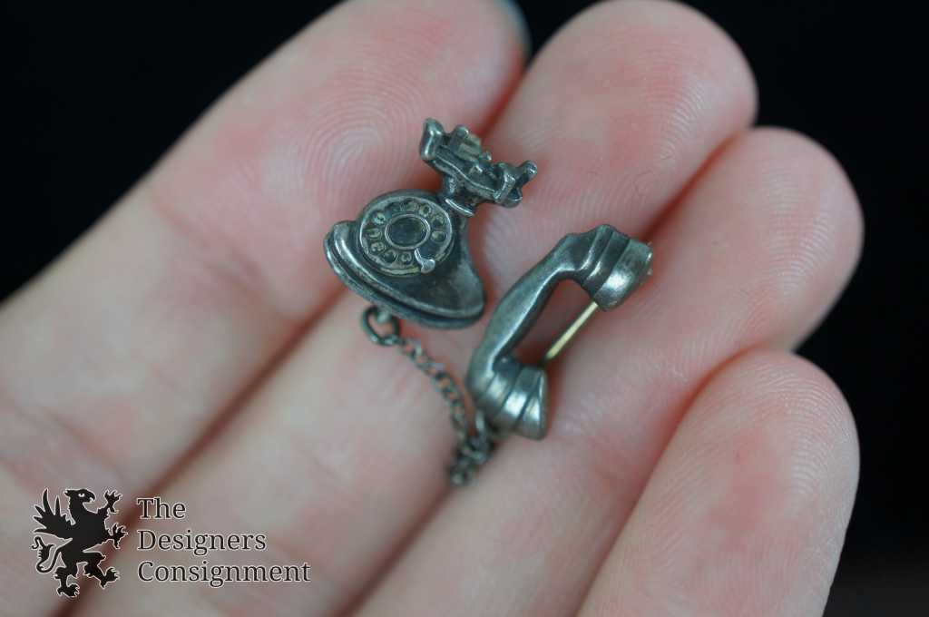 Vintage Sterling Silver Rotary Telephone Tie Chain Tac Lapel Pin Terryberry