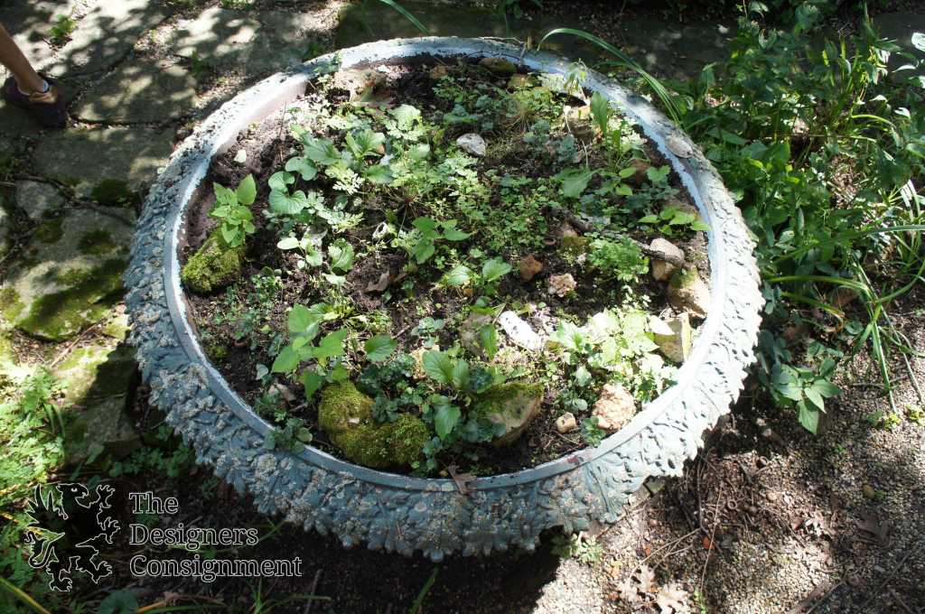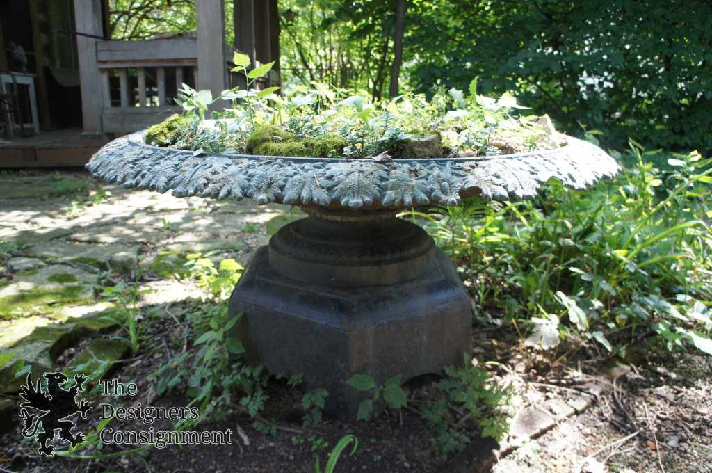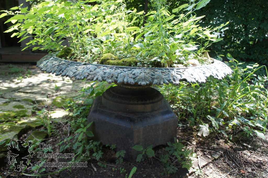 Monumental Victorian Garden Planter. Late 19th century. 2 Pieces including base. Features a floral relief edge along the bowl.