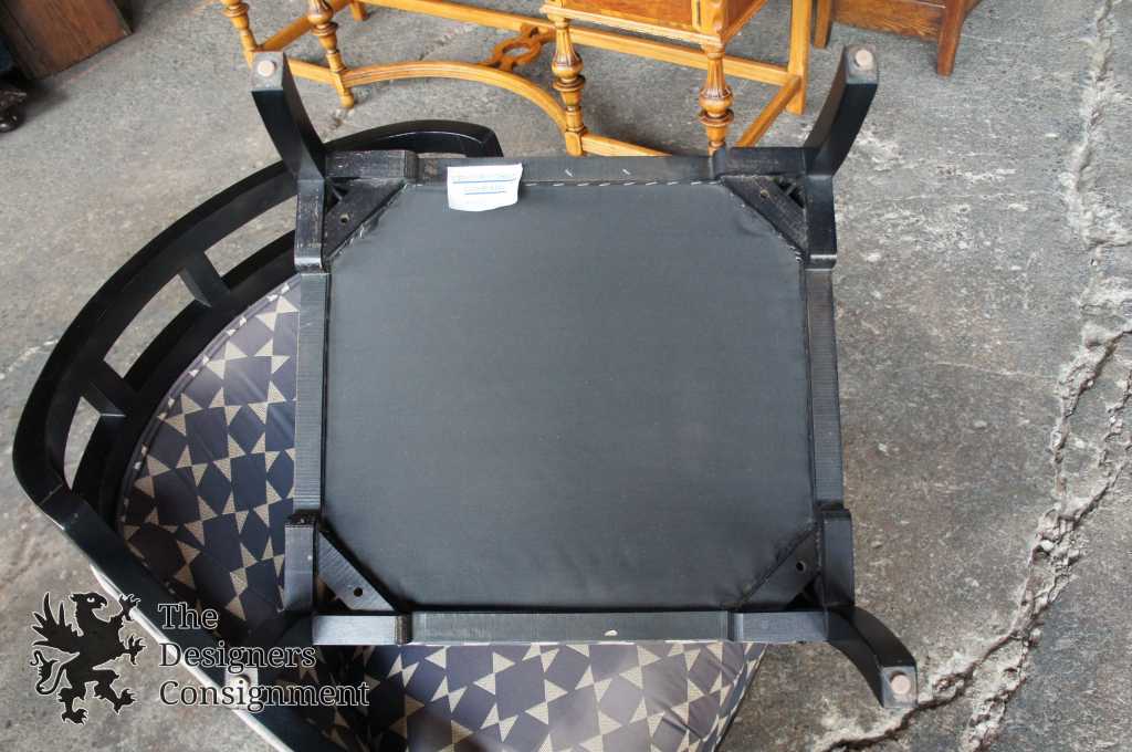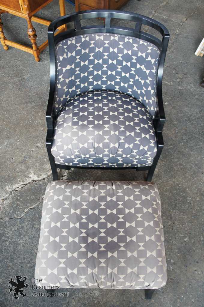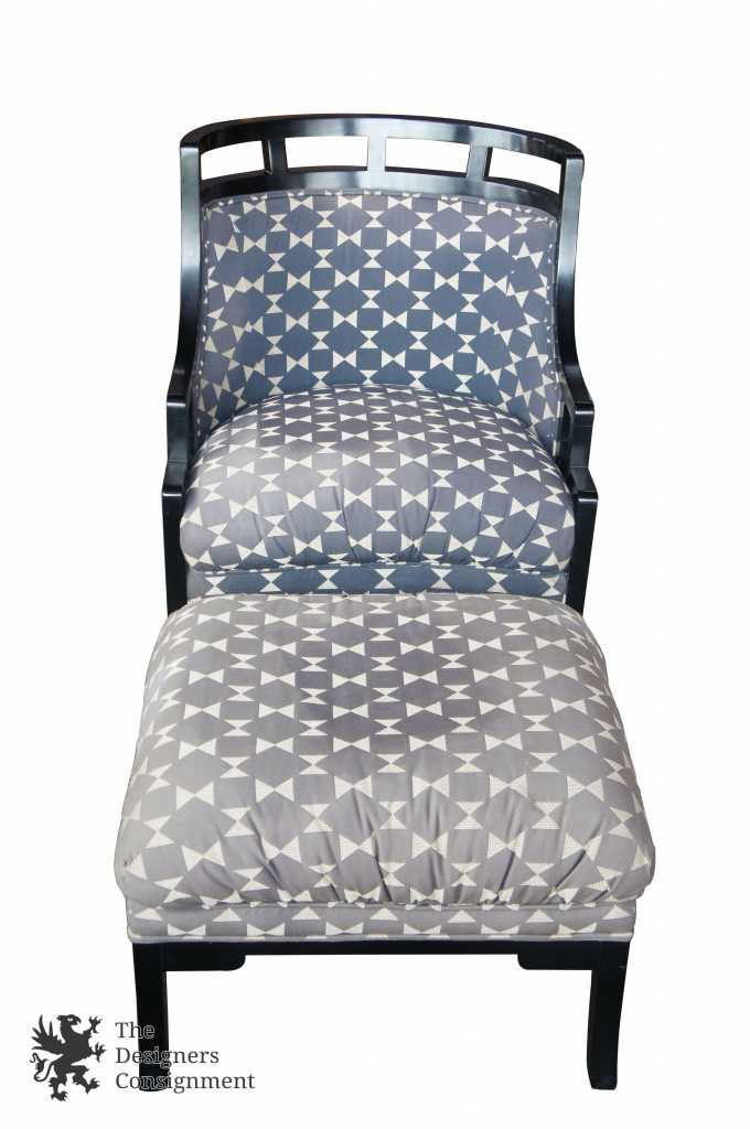 Century Chair Company James Mont inspired club chair with ottoman. Modern styling with a sleek black finish and geometric fabric.