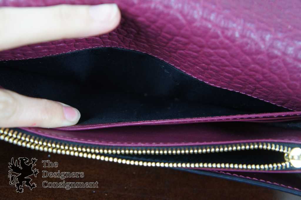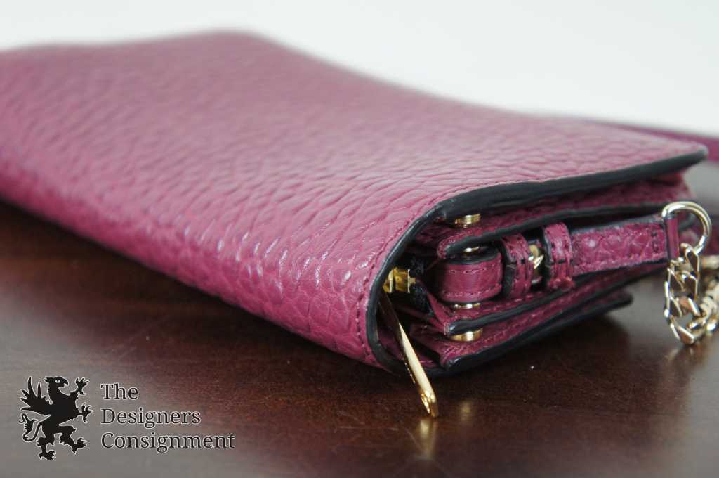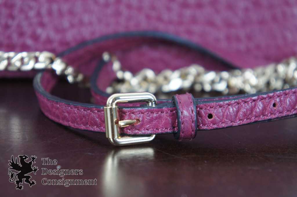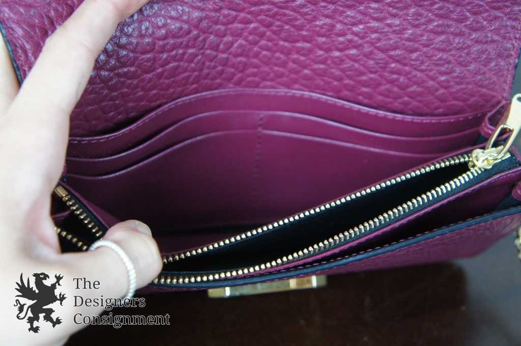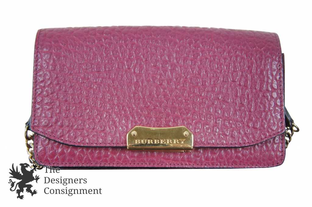 Genuine Burberry Signature Grained Madison Cross-body Wallet on Chain in Dark Plum/ Purple. Originally $850, currently sold out.
