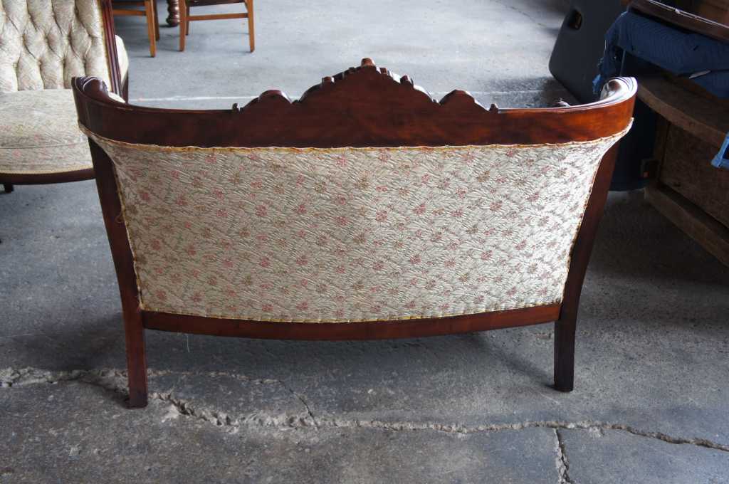 The wood is in great overall condition. Some distressing Fabric has staining, wear and loose cording. See Pictures for best description