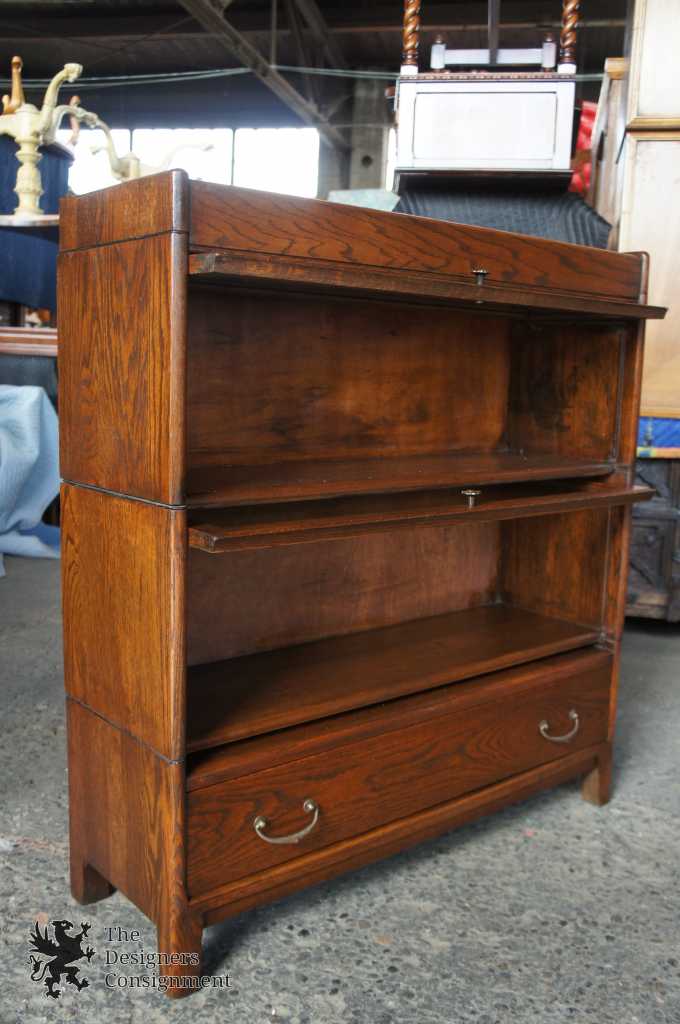 Up for consideration is an early 20th century barrister stacking bookcase from the Grand Rapids Michigan Furniture Association. Made from oak with two shelves and lower drawer for storage. Circa 1890s.