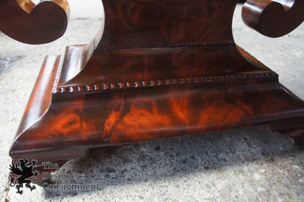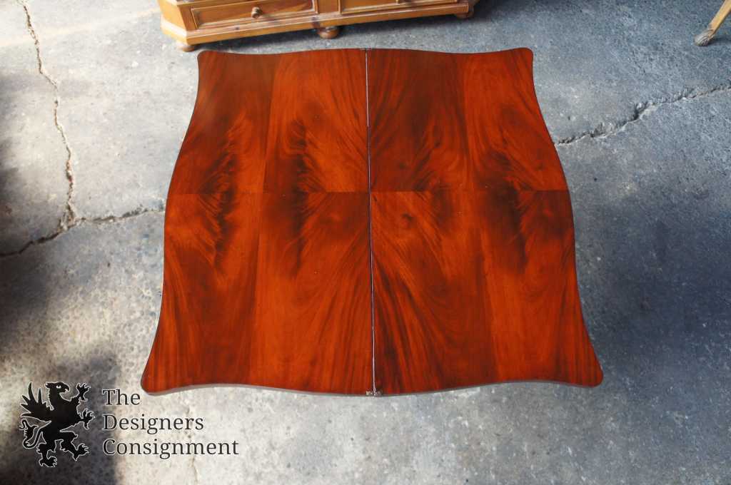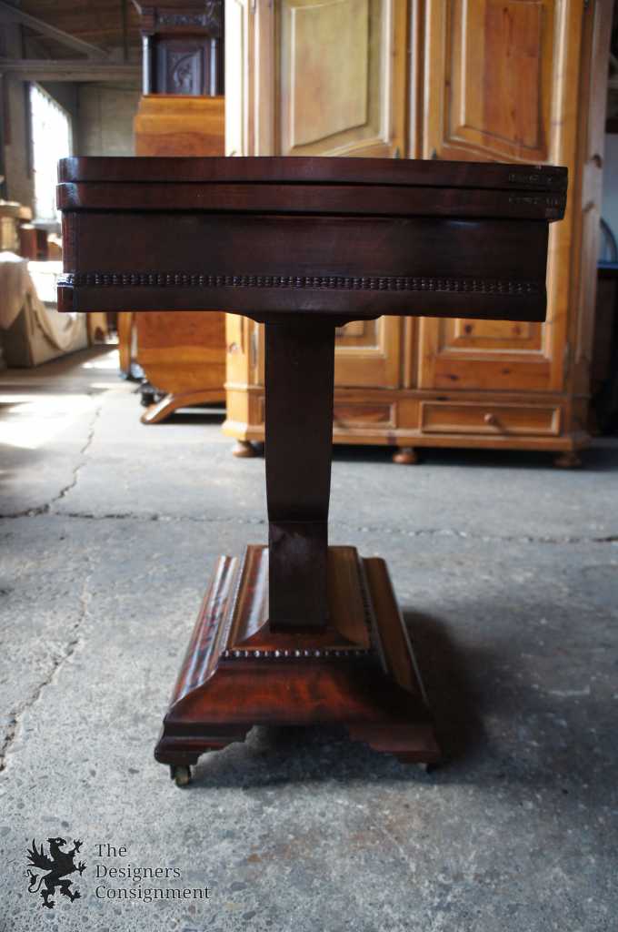 An amazing example of a 19th century American Empire game table. Made from Mahogany with a serpentine front, scrolled base and gadrooned trim. The top which can be removed swivels and opens for use. A neat addition to any setting.
