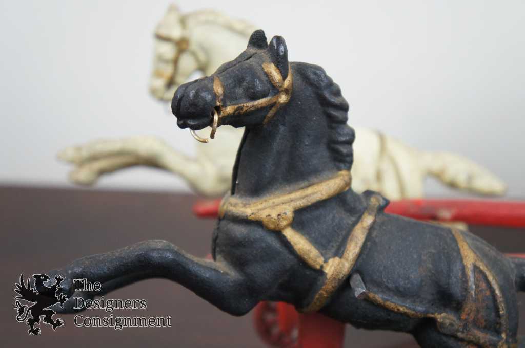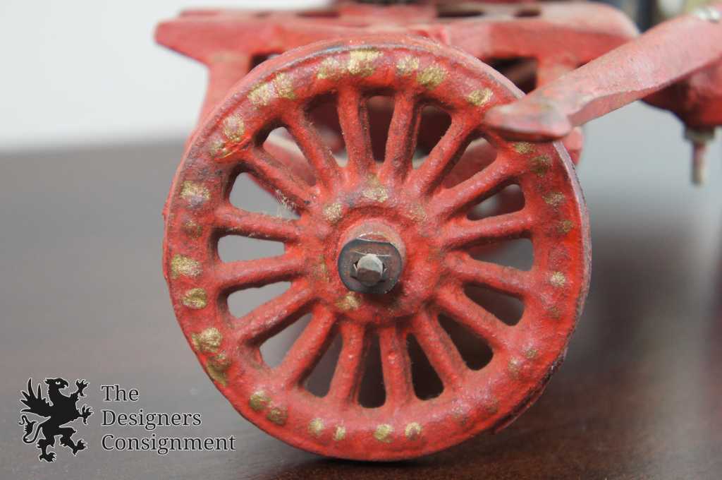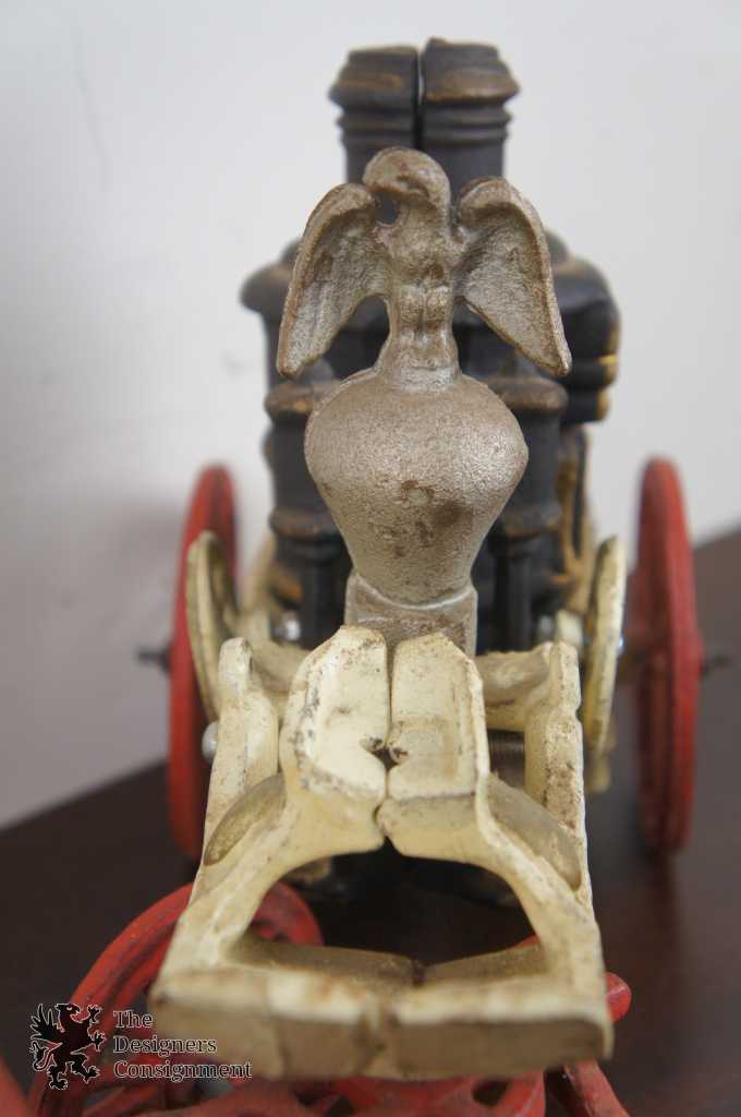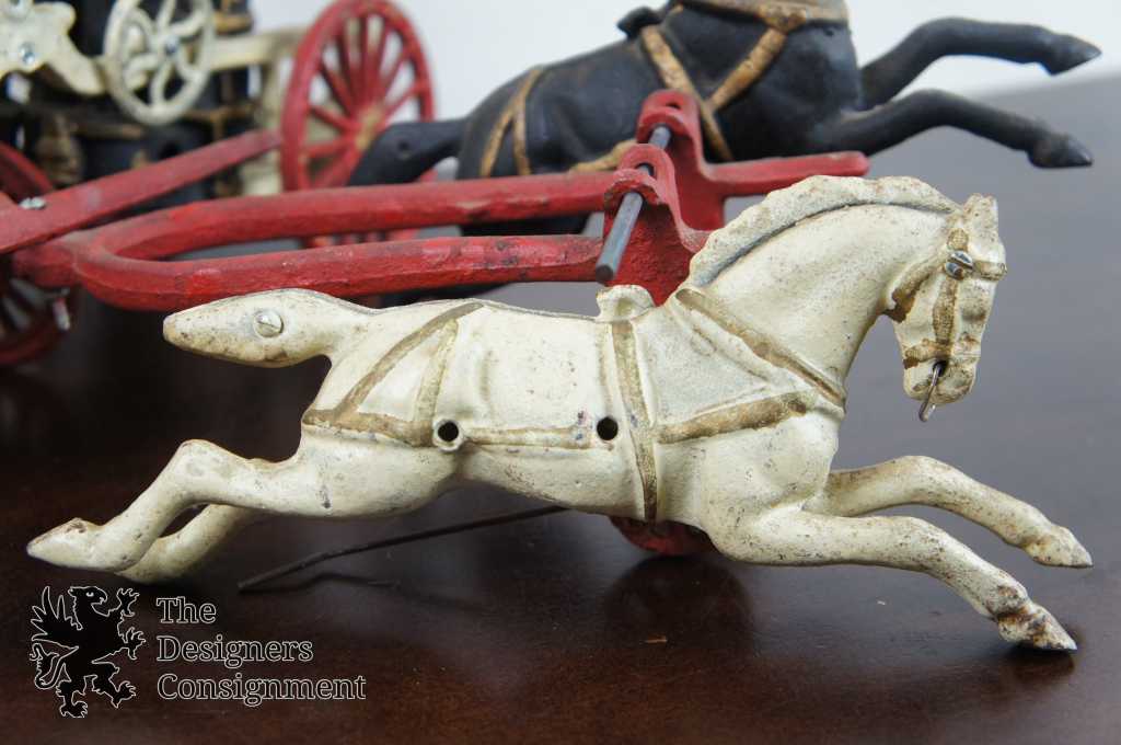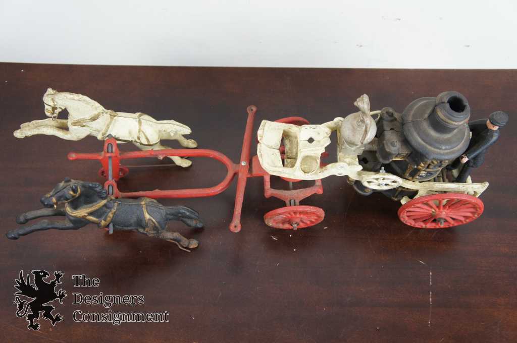 Reproduction cast iron fire engine steam pump and horses. A neat display piece for any setting.