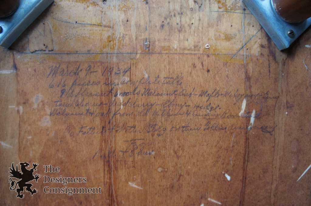 An exceptionally detailed marquetry side table. Made on March 19th, 1934. It took 616 pieces to complete the table and 9 different woods. Including; Walnut, Oak, Maple, Mahogany, Cherry, Wild Cherry. The last 2 woods I cannot make out from the letter along the back. This table was made as an anniversary gift by the father of one of my clients for his parents.