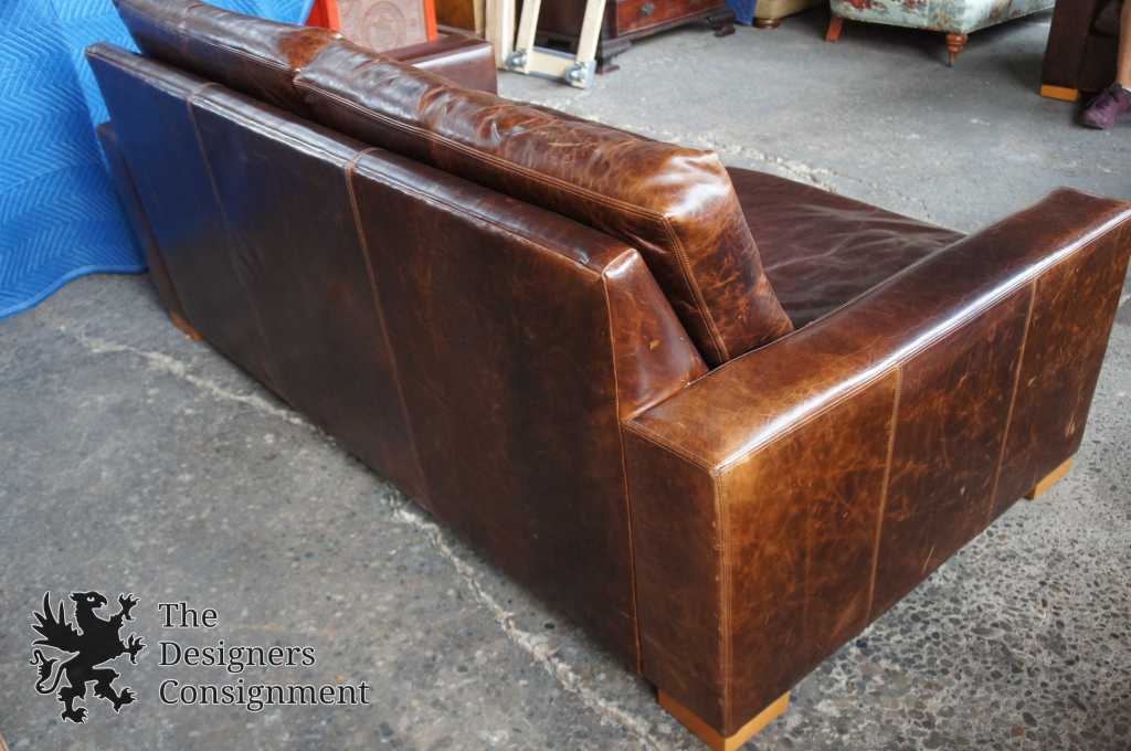 Grant Sofa by Thrive Furniture. A classic mid century modern design. Comfy brown leather upholstery with squared feet.