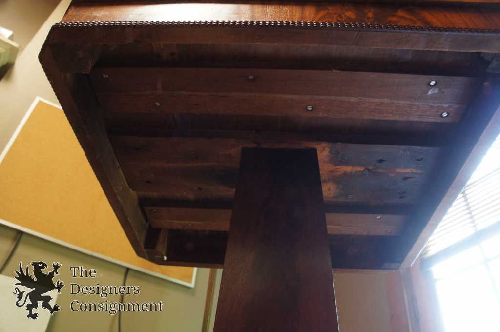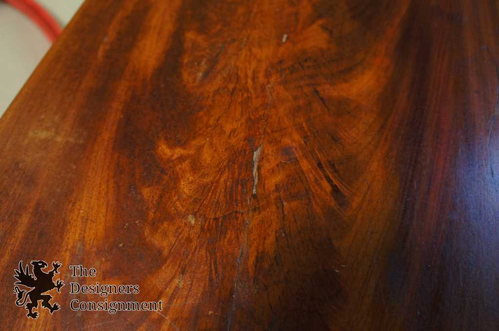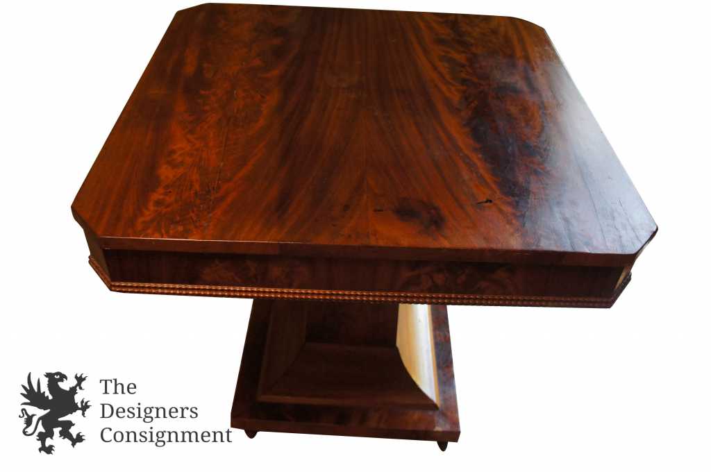 Mid 19th century American Empire center table. Square shaped with cut corners. Features a flamed mahogany veneered top and gadrooning along the apron. American empire is a French inspired Neoclassical style of American furniture that originates from design elements and architecture of the First French Empire under Napoleons rule.