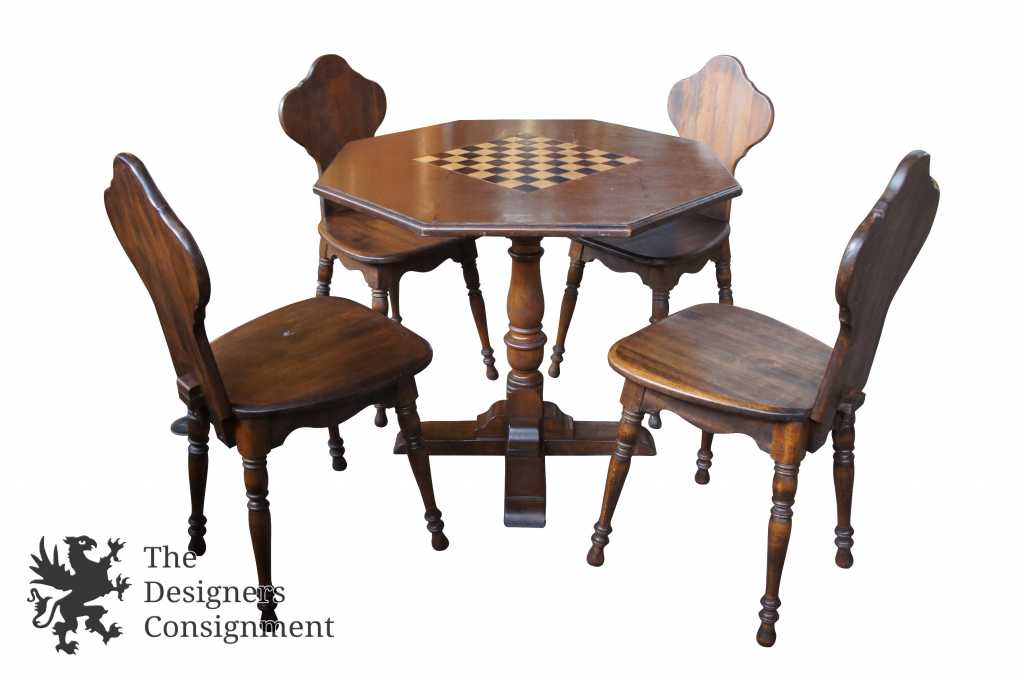 Up for consideration is a neat multipurpose game table. Made from maple with 4 chairs.