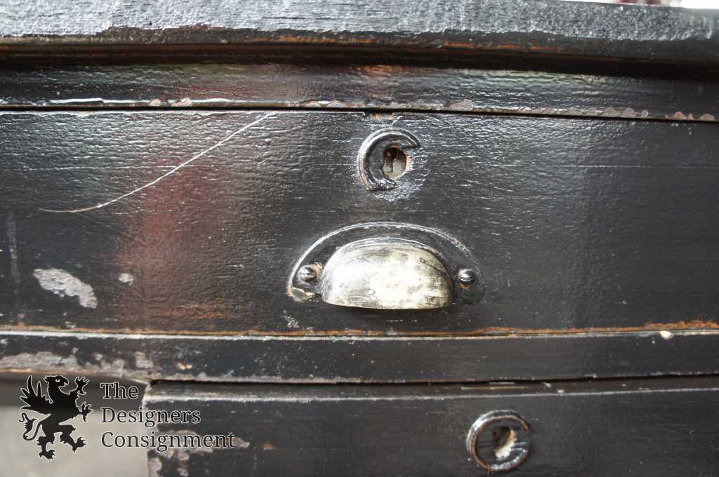 Good Considering Age - Distressing to Finish. Desk was painted black at some point.