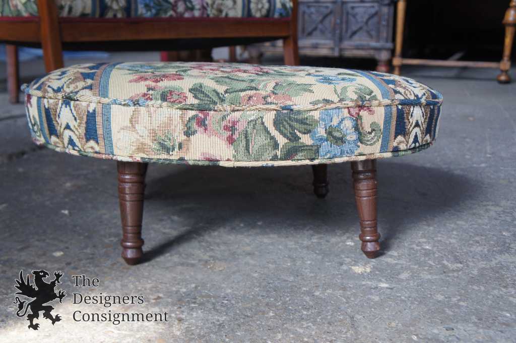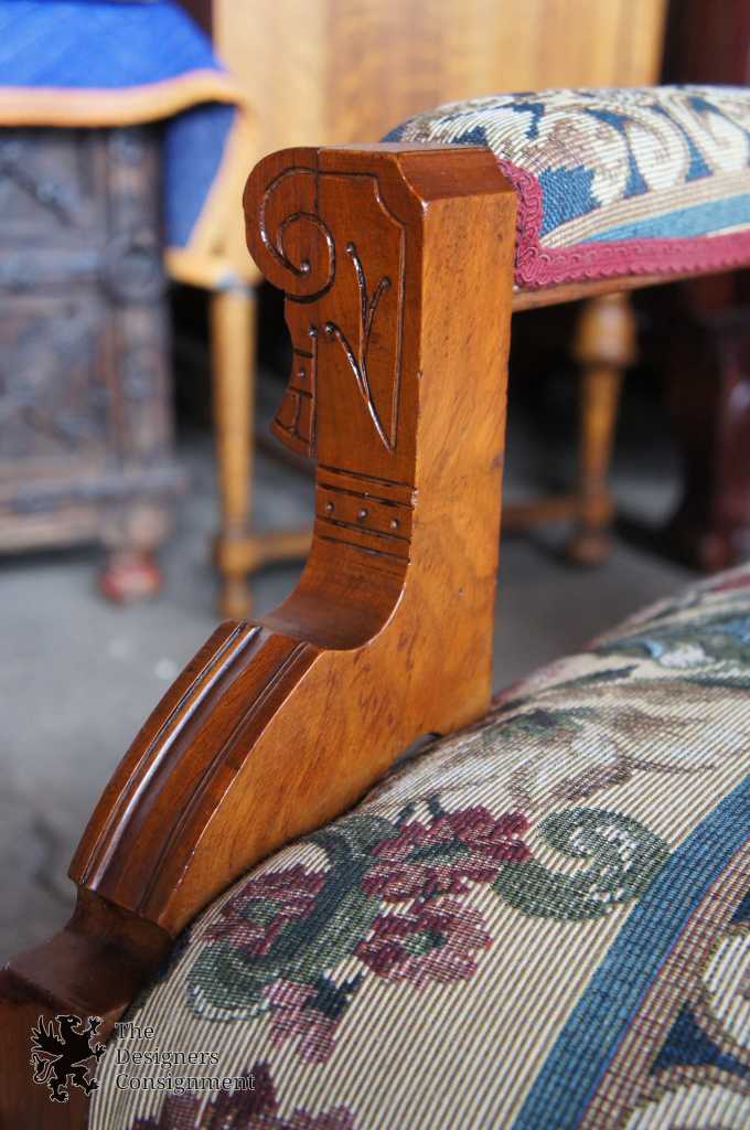Up for consideration is an elegant late 19th century parlor setter and chair with ottoman. Made from walnut with intricately carved detail and burled panels. Upholstered in a floral fabric. A neat addition to your sitting area.
