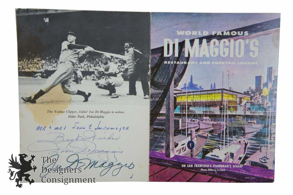 Vtg Dom & Joe DiMaggio's Restaurant Autographed Signed Menu w/ COA Baseball MLB