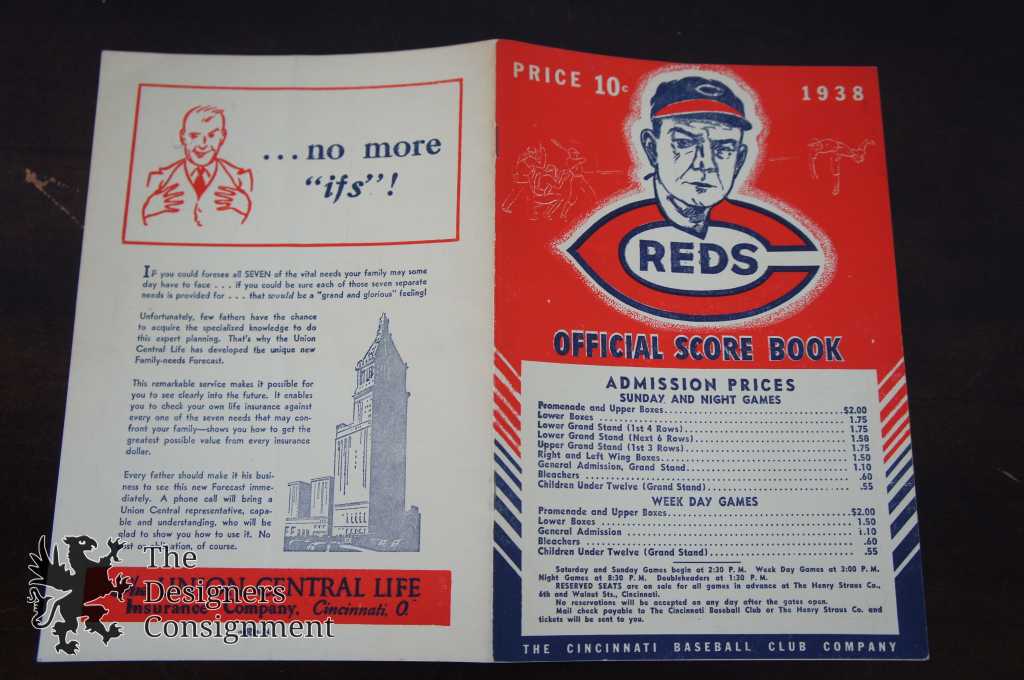 Antique 1938 Reds Scorebook Program Cincinnati Baseball Club Co vs Philadelphia