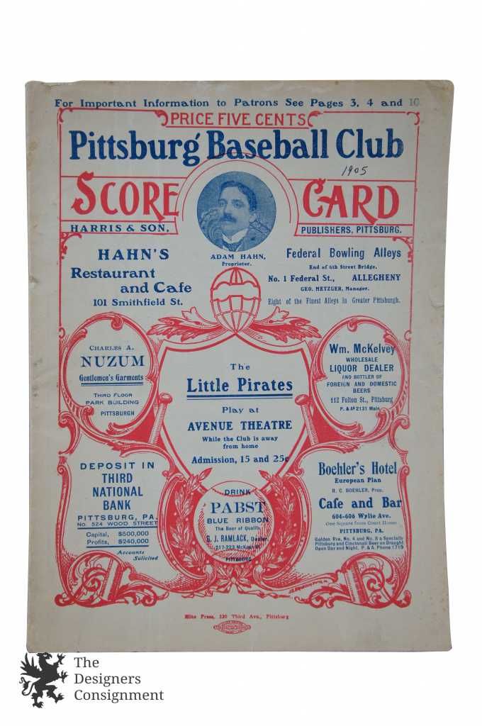 Antique 1905 Pittsburgh Baseball Club Scorecard Program vs New York Scored