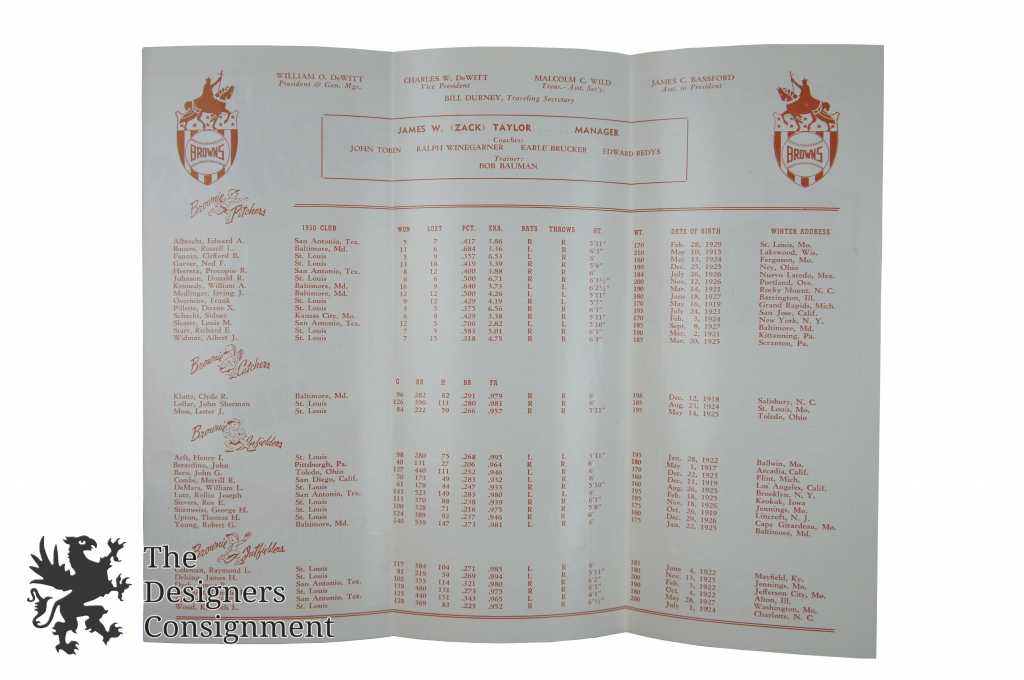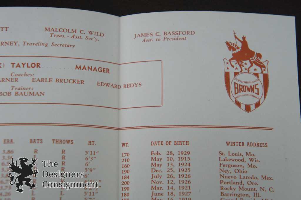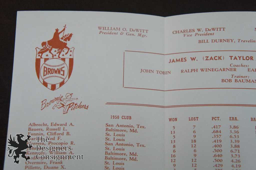 Vintage 1951 St Louis Browns Schedule Roster American League Golden Anniversary