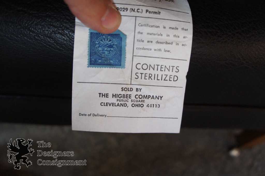 Up for consideration is an amazing leather tufted chair and ottoman from Higbees. Circa 1950-60. Higbees was a department store founded in Cleveland Ohio in 1860. They were in business until 1992 when Dilliards purchased and re-branded the chain.