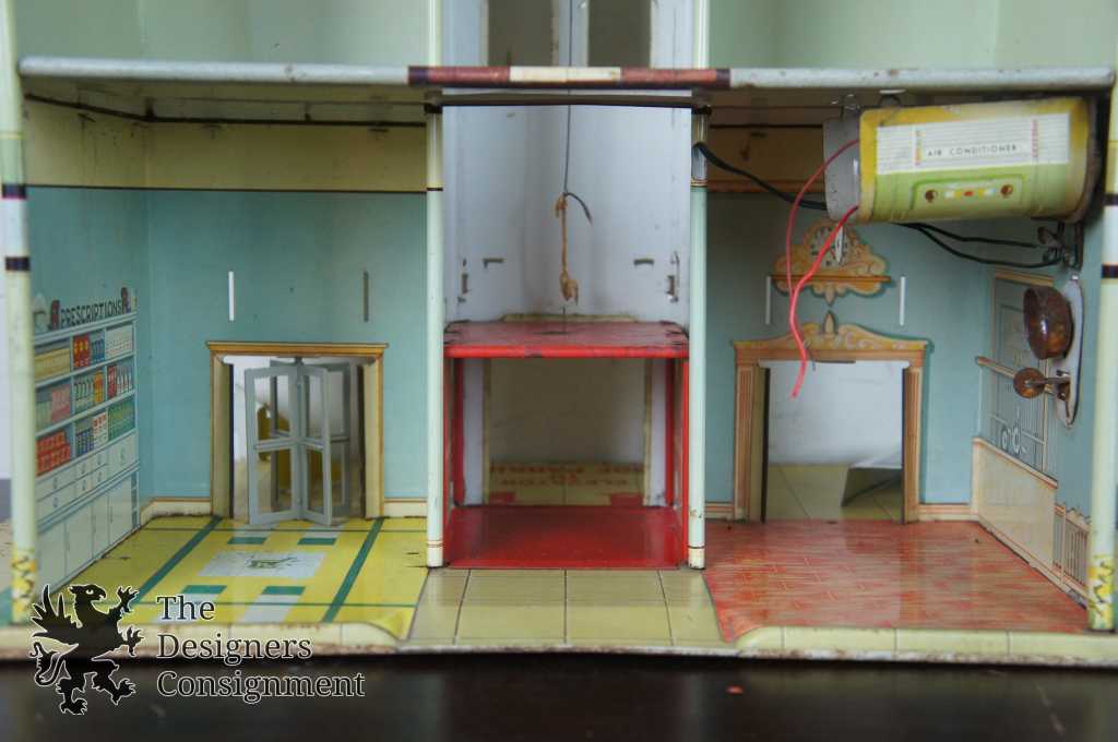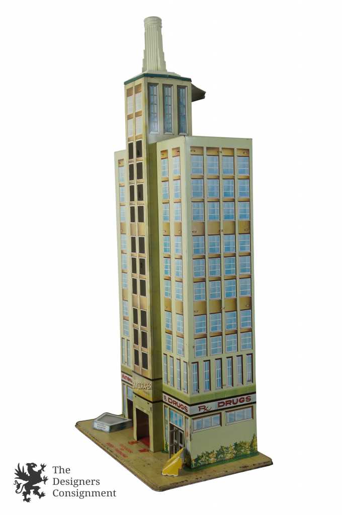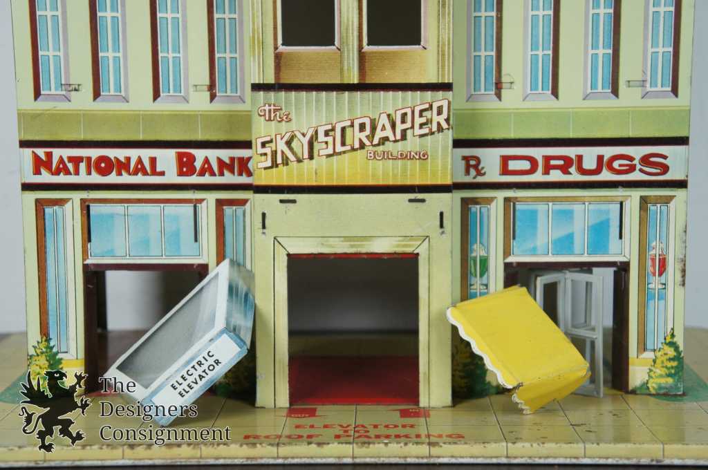 Original, Vintage 1950's Louis Marx Skyscraper Building Tin Litho Toy Play Set No. 5450, Series 1000. This very rare Skyscraper set is one of the most desirable and hardest to find tin playsets ever produced by Marx.
