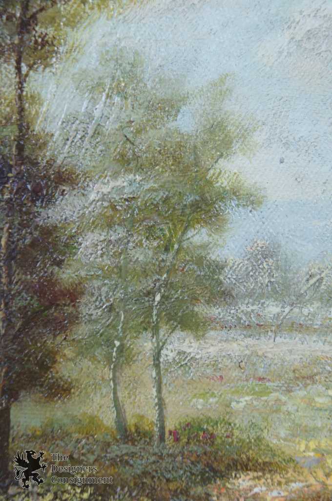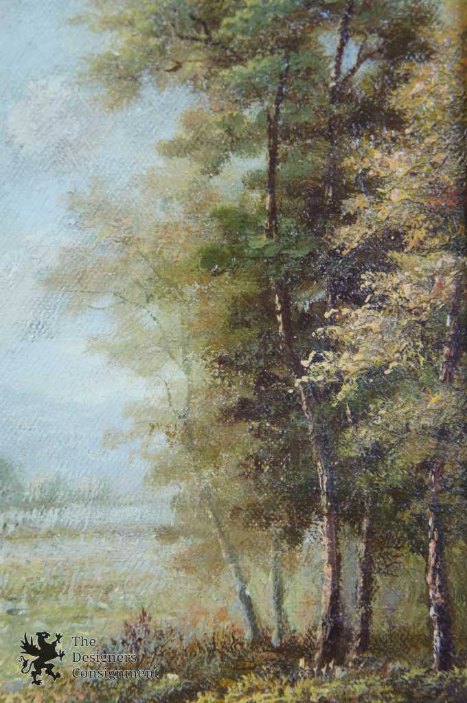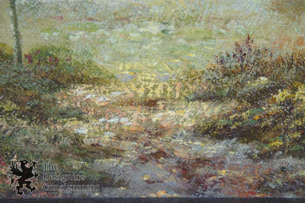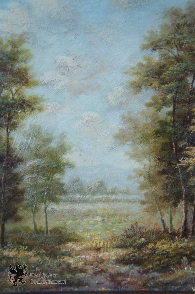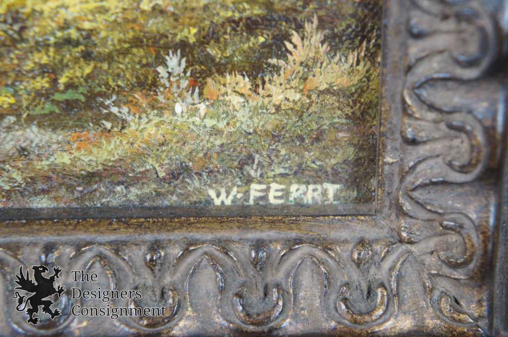 A lovely impressionist oil painting showing an opening through the trees on a nice summer day. Signed lower right W. Ferri and professionally framed.