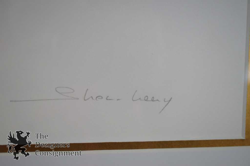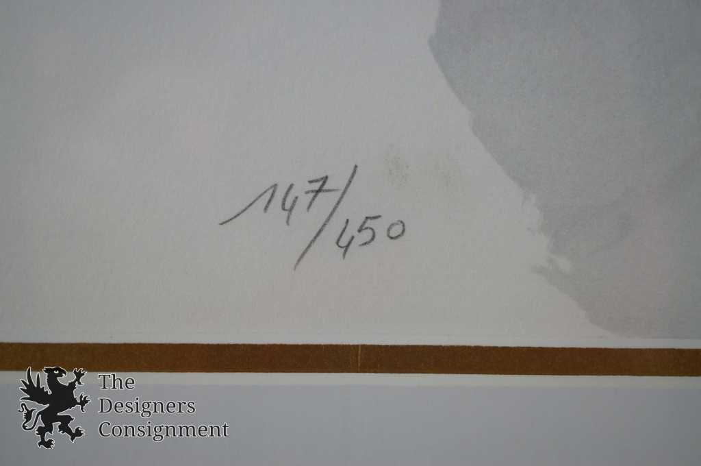 A limited edition lithograph on paper titled Magicia by French artist Shan Merry (b. 1938). This work depicts a sultry, abstract female in subtle hues of green, purple and yellow. It is signed “Shan Merry” by hand to the lower right corner and a limited edition number 167/650 in lower left.
