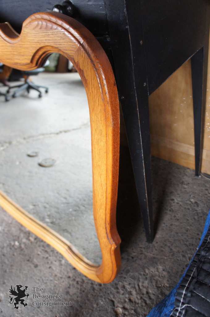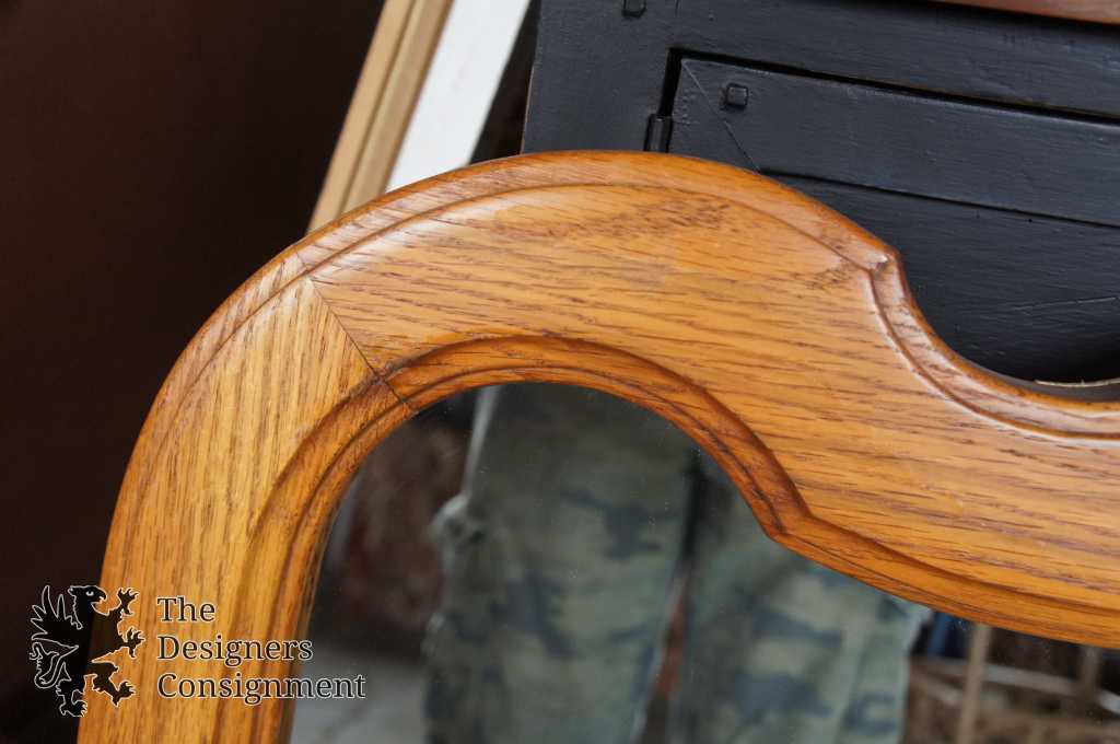 Large Vintage Golden Oak Wall Mirror Scalloped Edge Mid Century Carved Mantle