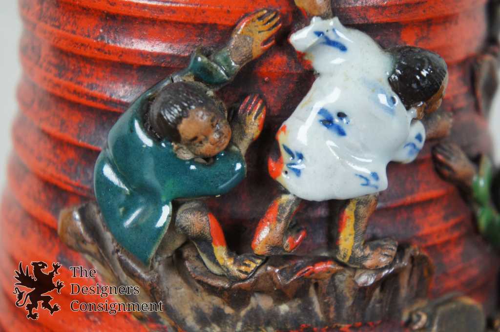 Featuring drip glaze and high relief children