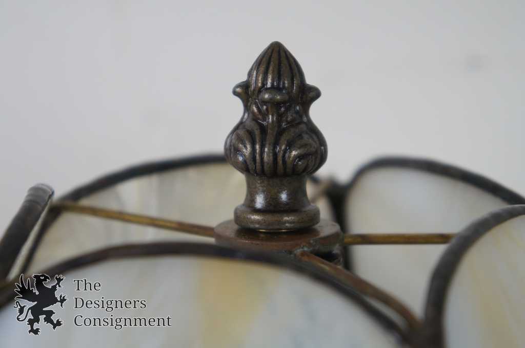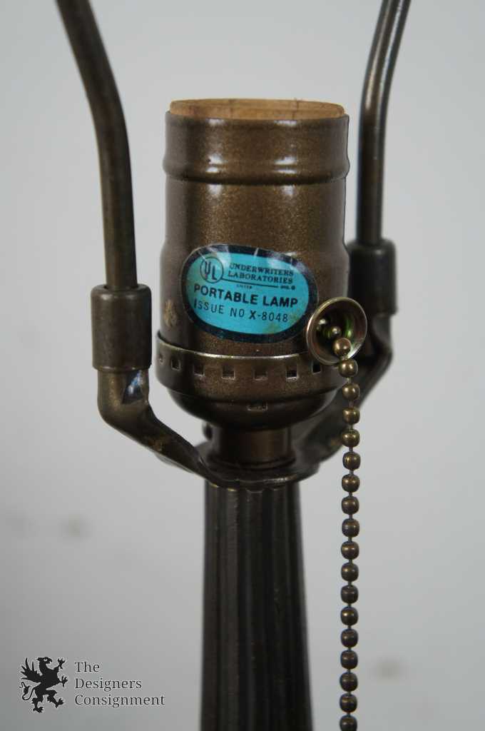Here we have a Tiffany stile table lamp with cast metal base and tulip shade. A neat addition to any setting.