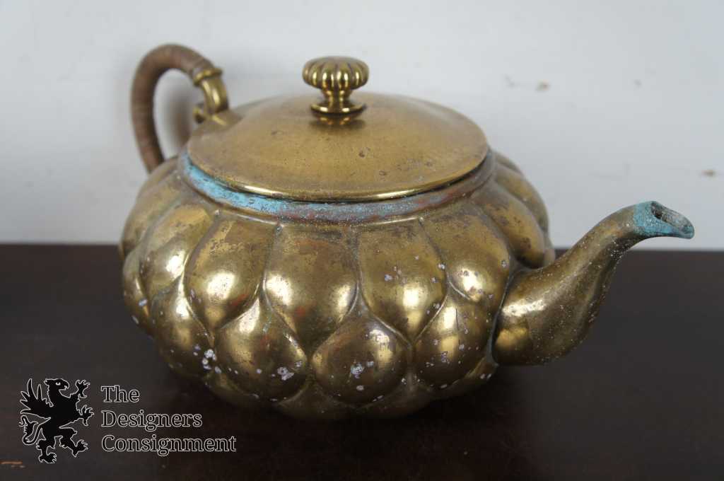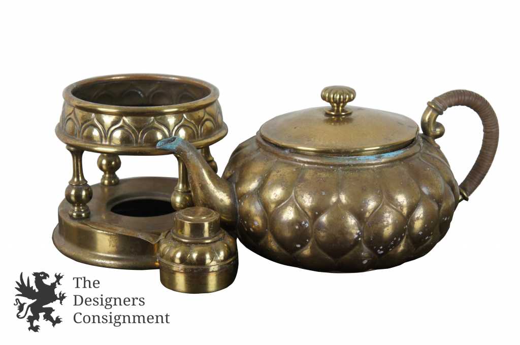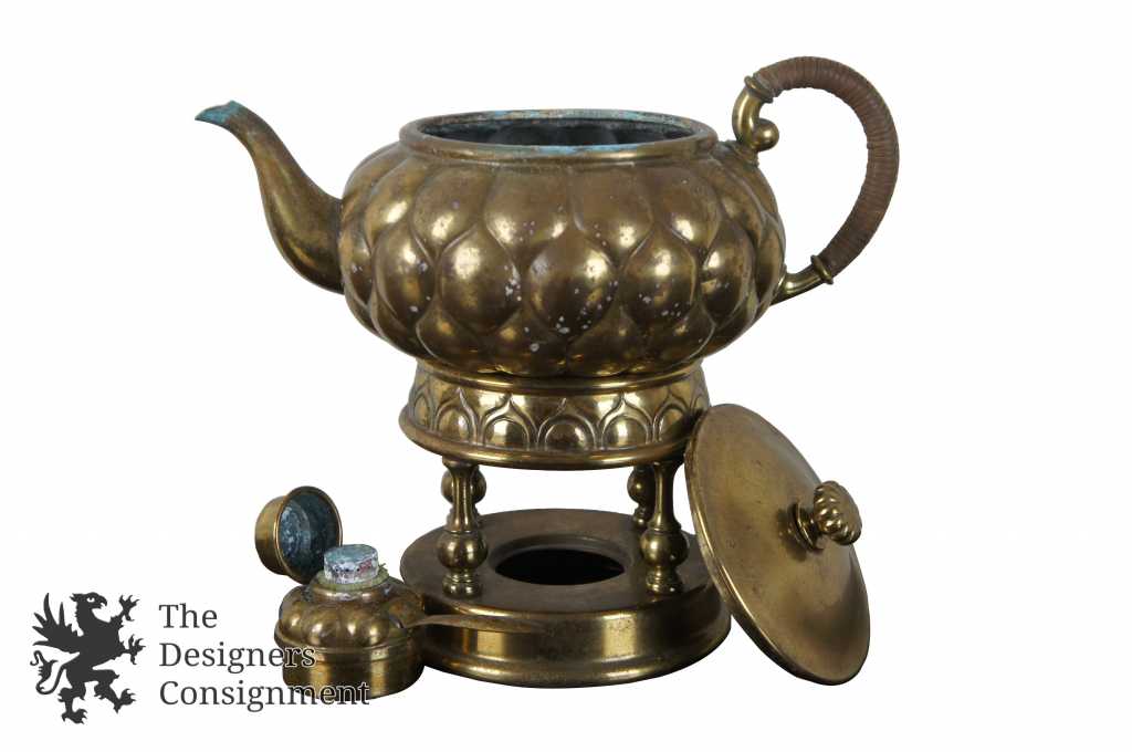 Antique German teapot with stand and burner. A neat bubbly design with wrapped handle
