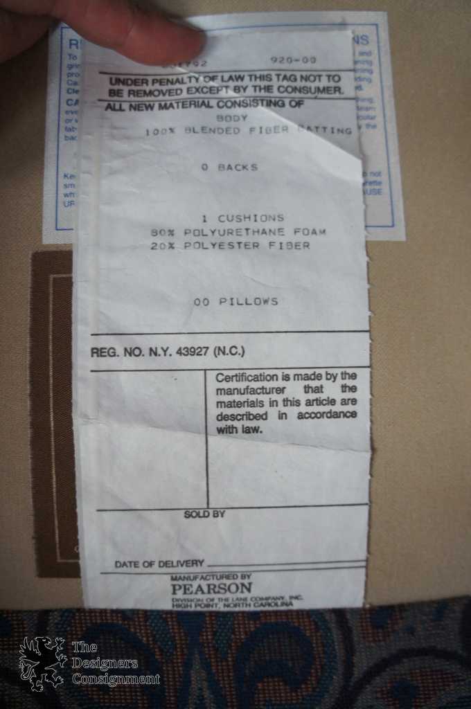 2 Pearson Traditional Wingback Chairs & Ottoman. Features ball and claw feet with a blue Ikat style upholstery. Great for any sitting room.