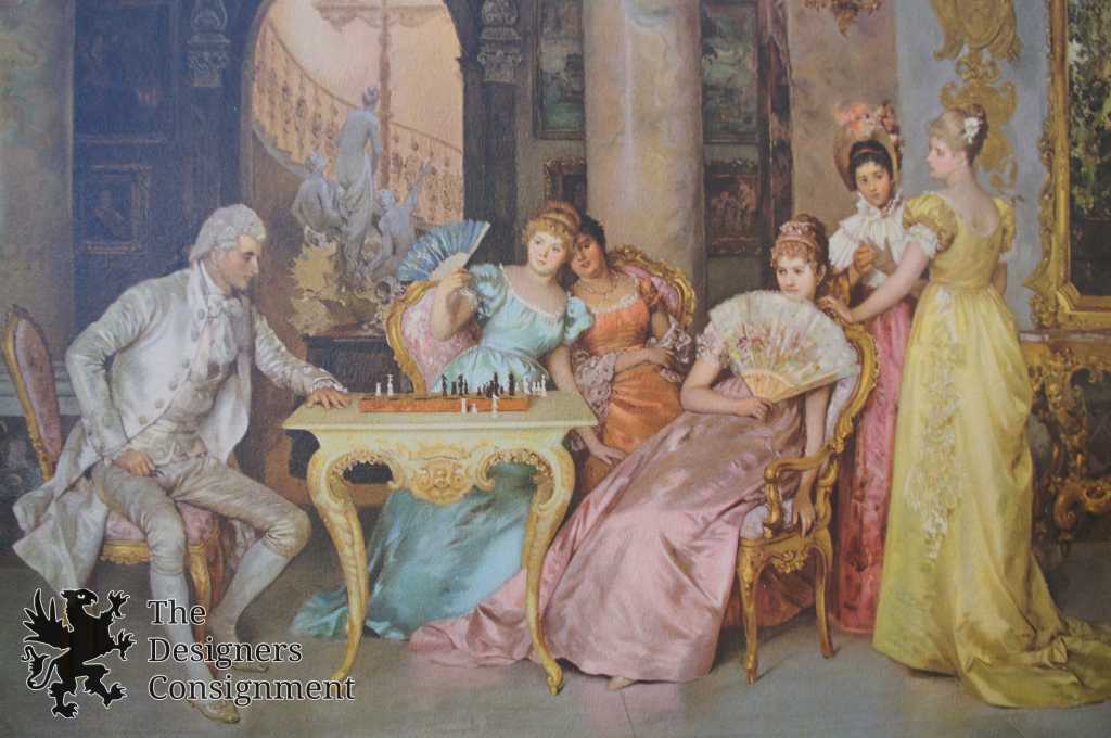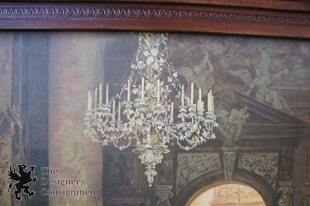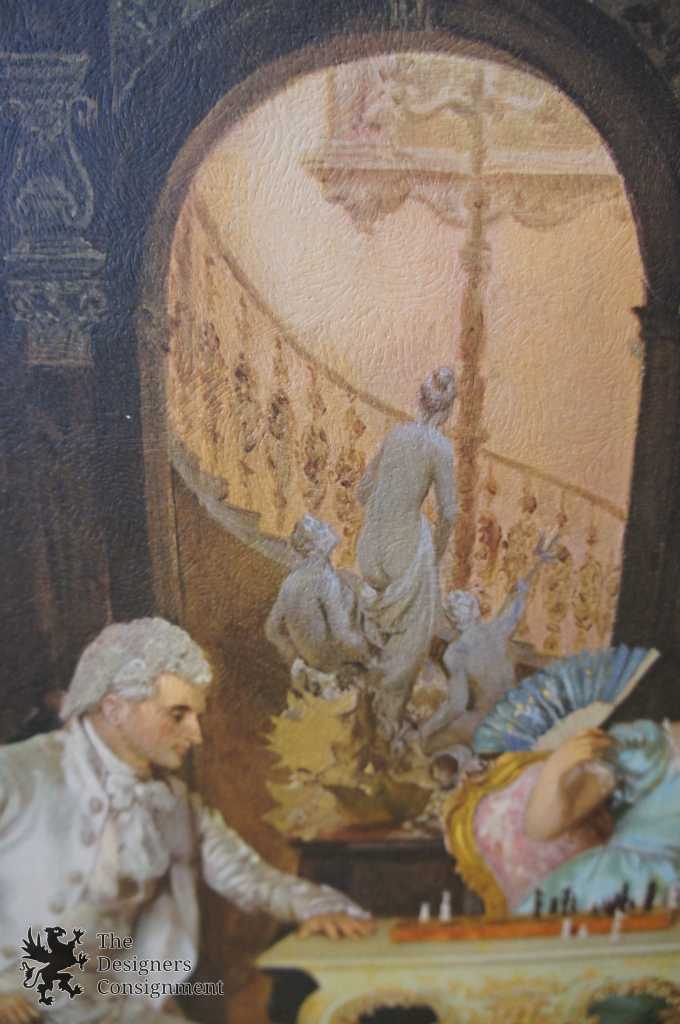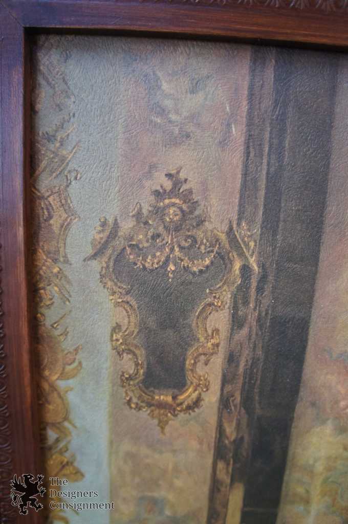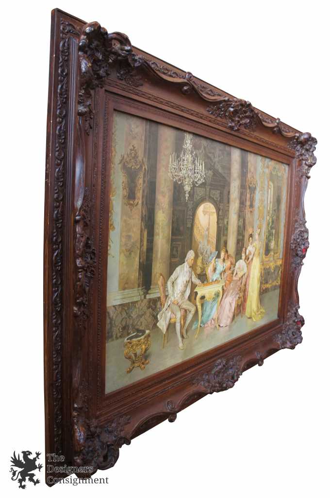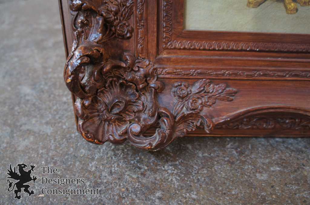 The art is displayed in a large ornate frame with floral and scalloped details.