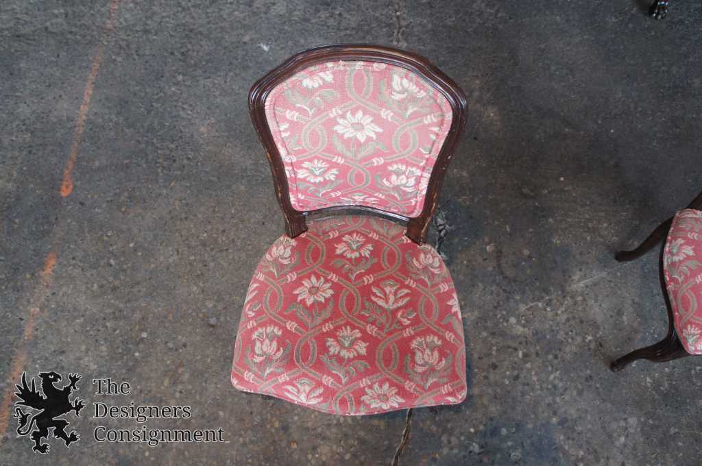 8 French Louis XV Style Walnut Dining Chairs Upholstered Floral Pink Country
