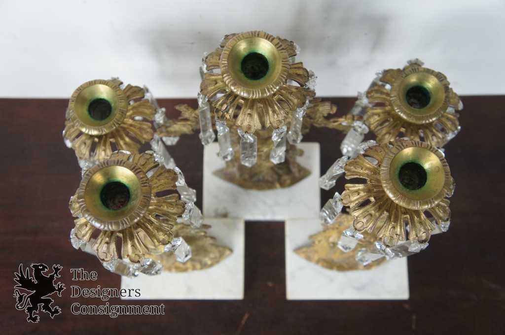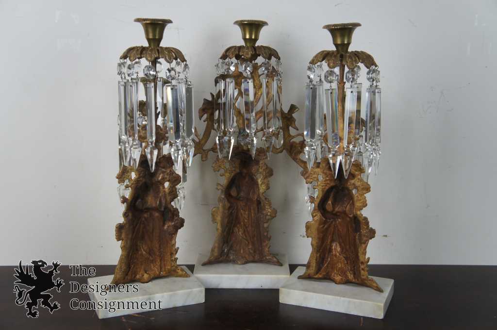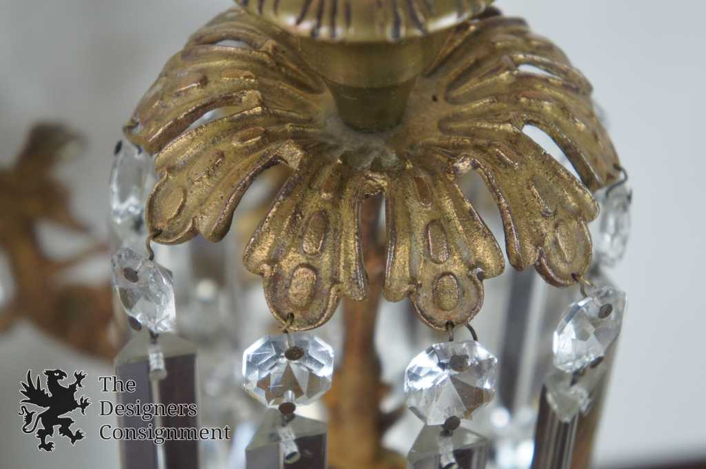 Marble bases with large beautiful drop prisms/crystals and floral/leaf motif.