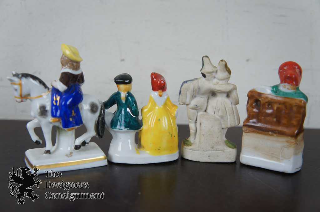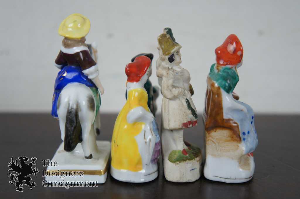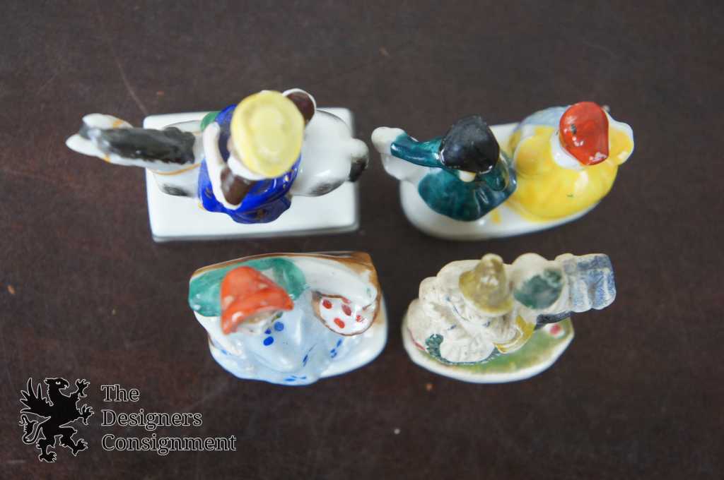 A fun lot of miniature porcelain and bisque figures. 3 are porcelain colonial style occupied Japan, and the other is bisque possibly German. A neat addition to any collection.