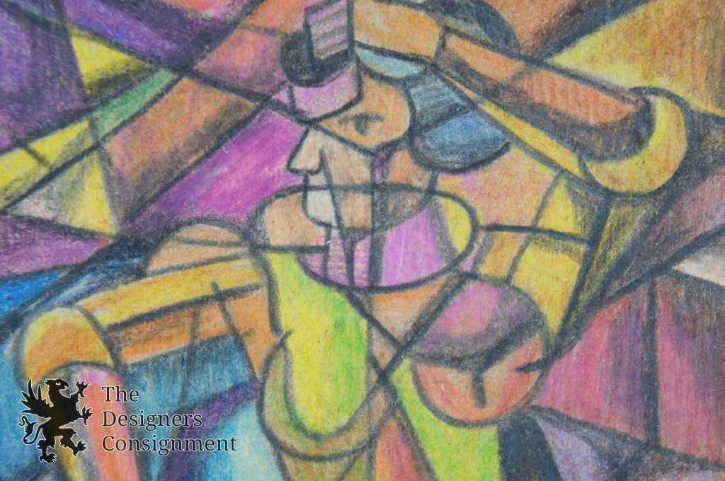 Exceptional Russian avant-garde pastel, circa mid 20th century. Signed KZ along the right side. Beautifully detailed with vibrant colors in classical cubist fashion. Features a nude female with guitar. Framed in a black pine with gloss covering.