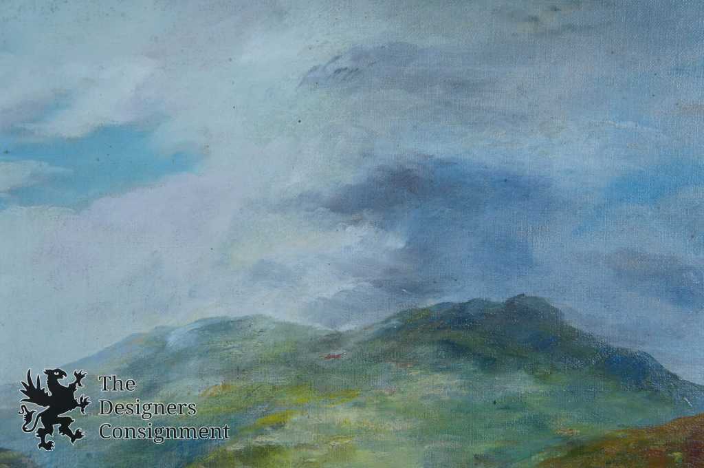 A lovely 20th century countryside oil painting. Depicts the mouth of a river where sheep can be seen along the rock-side amongst a hilly backdrop. The piece is signed lower left. Appears to say G Vate Tais. Artwork is professionally framed. A wonderful piece for any setting.