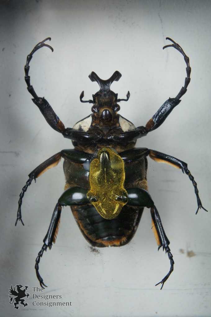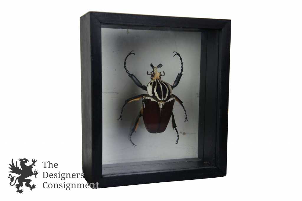 Circa 1990s Vintage Goliath Goliathus Taxidermy In Black Shadow Box Frame