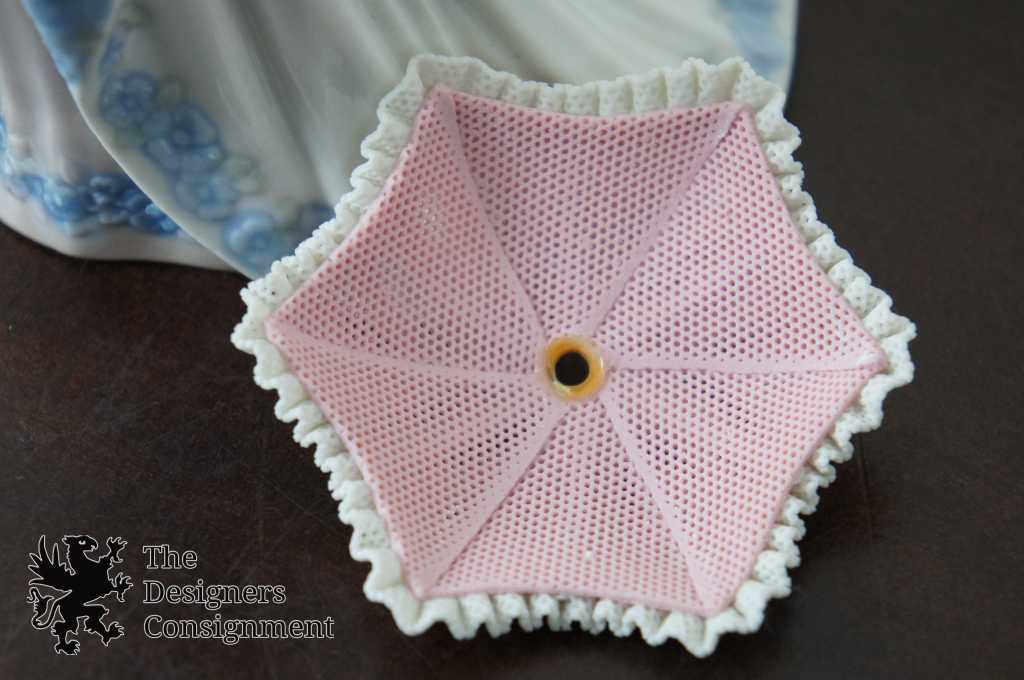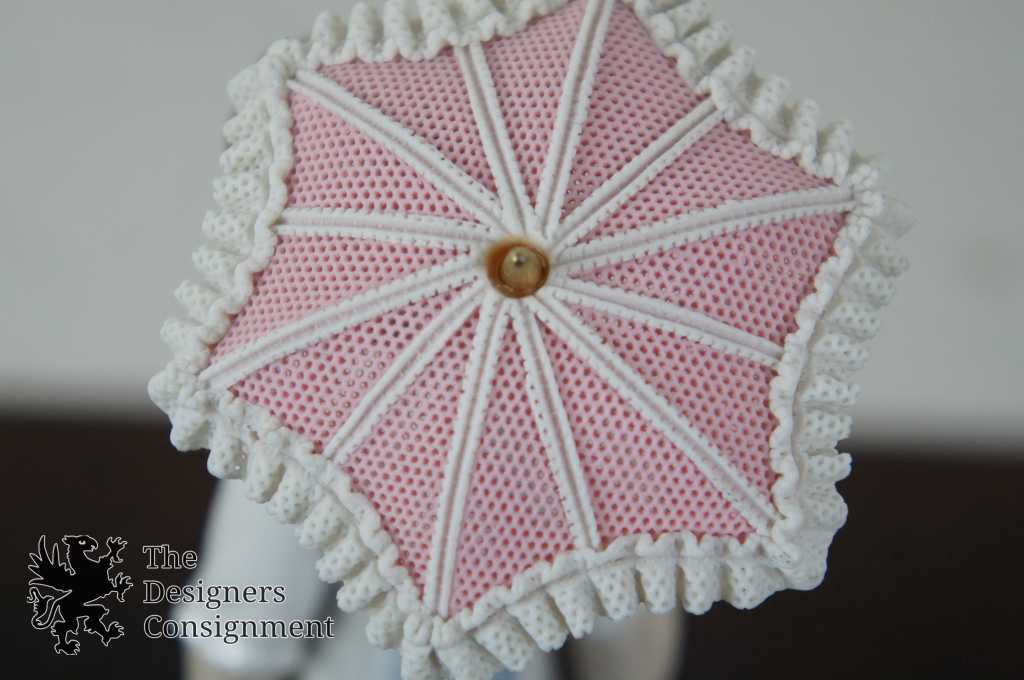 Features a woman with lace parasol