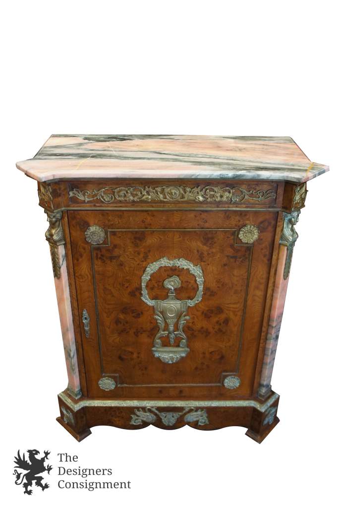 Antique Louis XV French Olive Ashwood Burled Console Table Knockdown Pink Marble