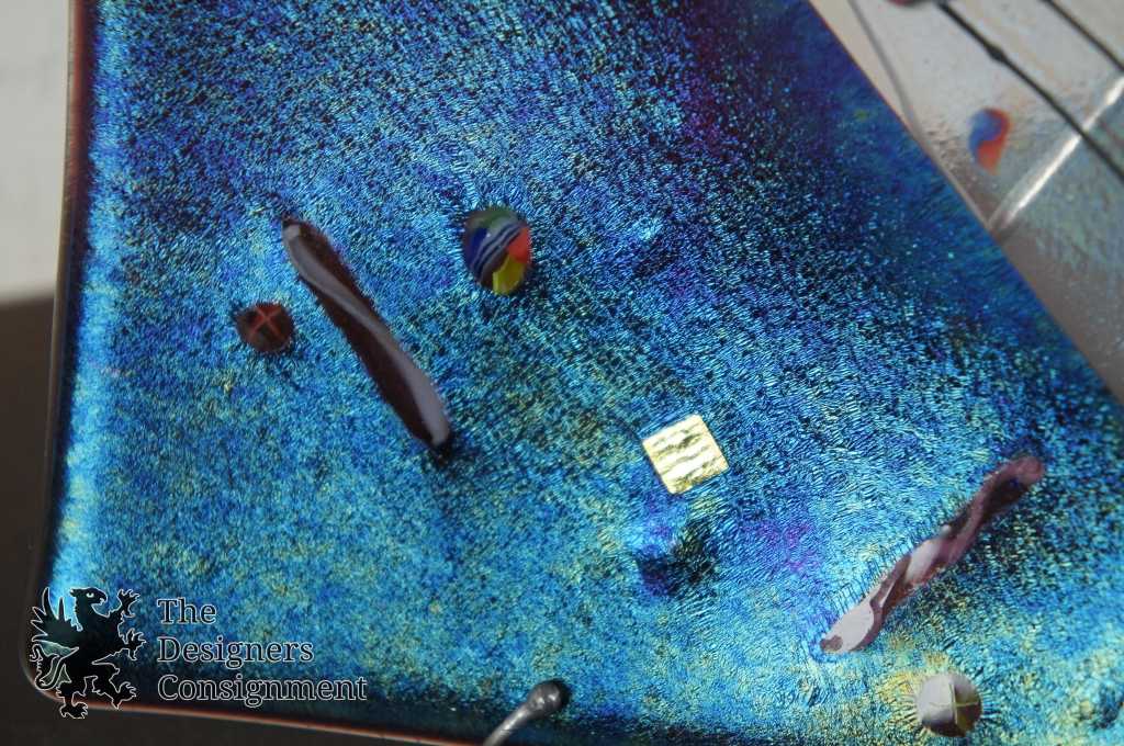 Kurt McKvay Dichroic Art Glass Plate. The plate comes with a pyramid glass stand and is hand signed along the back.