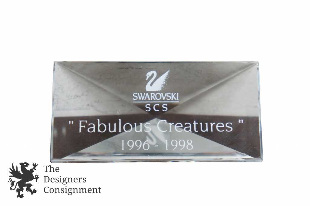 1990s Swarovski Crystal Fabulous Creatures 5421 Plaque Prism Paperweight Org Box