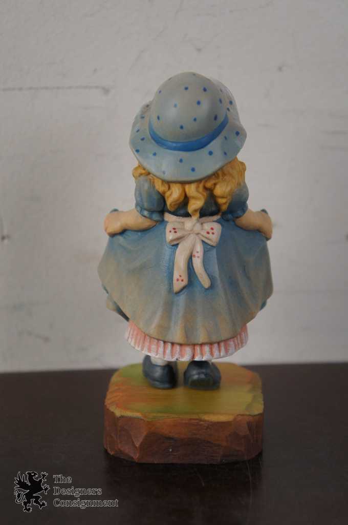Vintage Anri Exclusive Club Figurine Girl Dress Bird Ferrandiz Carved Wood Italy