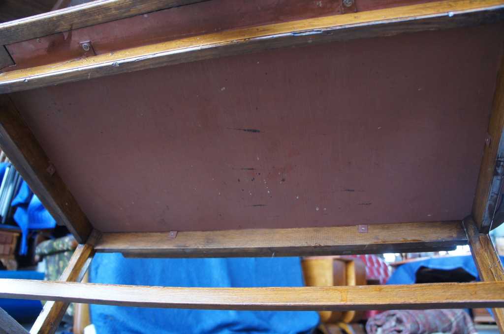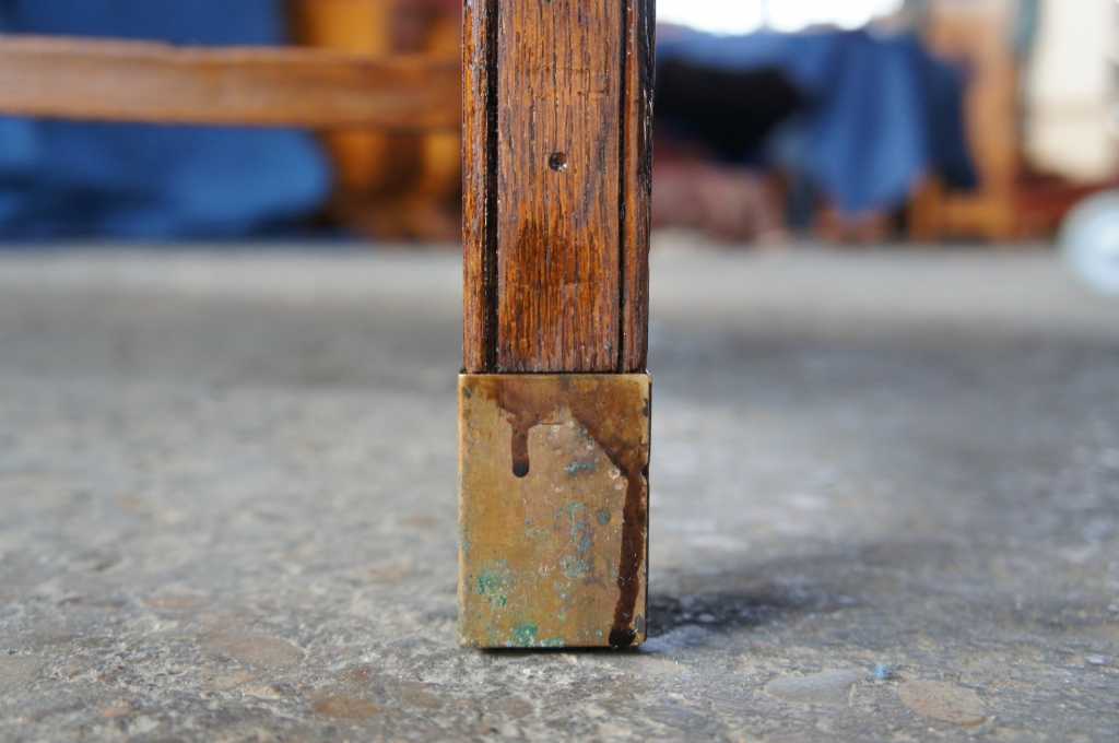 Traditional coffee table with brass top by Chapman. Made from solid wood with a trestle base. The table is rectangular with a scalloped molding. Features a heavily distressed finish. The perfect compliment to any setting.