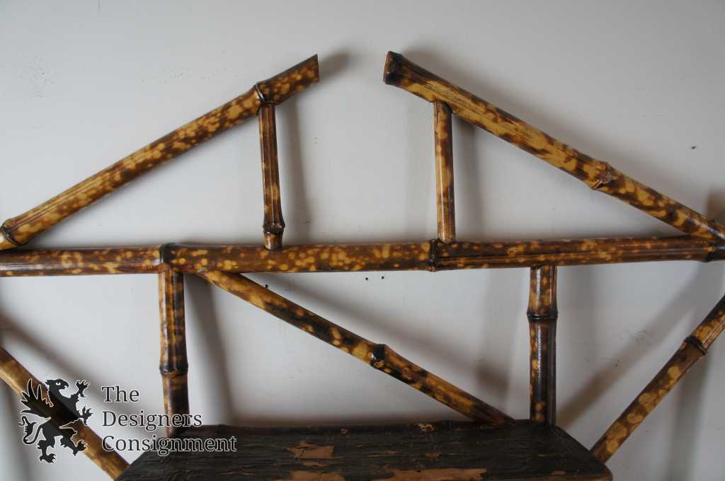 Exquisite example of a Chinese Chippendale inspired early Hollywood Regency wall shelf with mirror. Made from bamboo with floral leather engraved shelves. The open pediment design and centrally located mirror make this the perfect compliment to any setting.